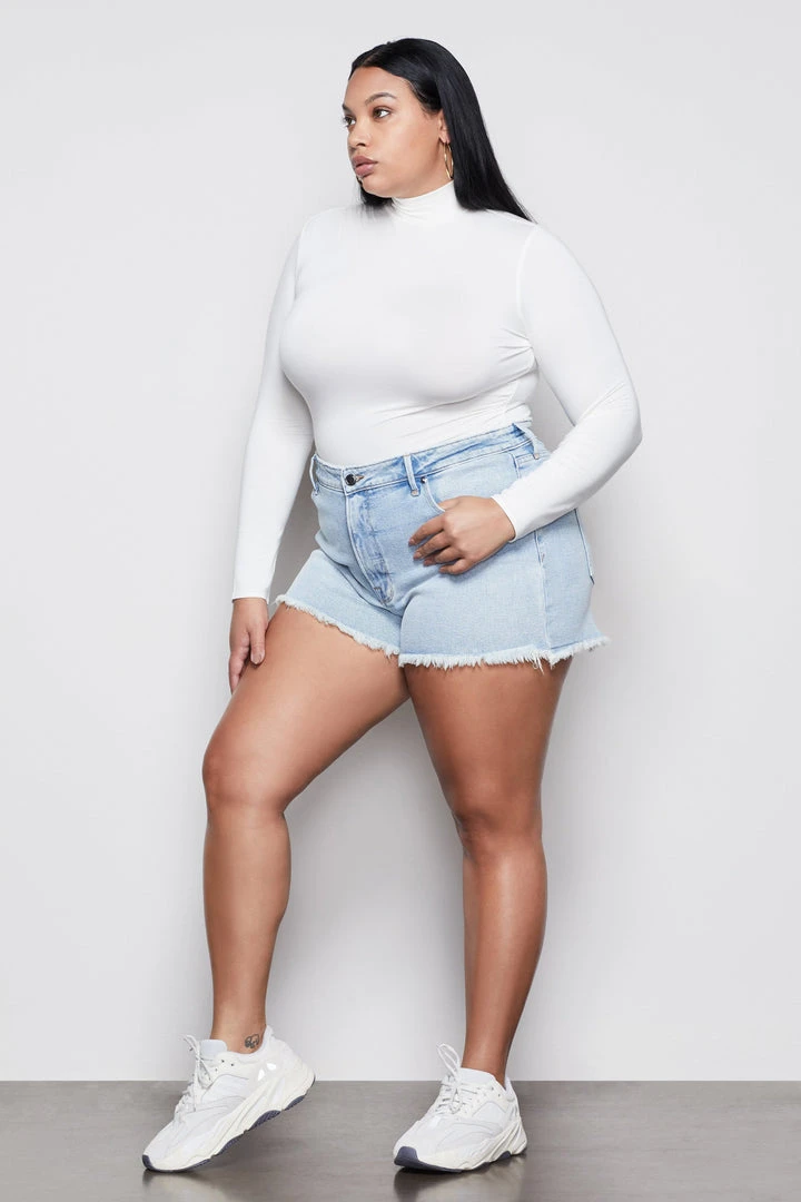 A chic turtleneck bodysuit with subtle ruching at waistline and neckline. Designed to take you from a day at the office to casual evening cool.