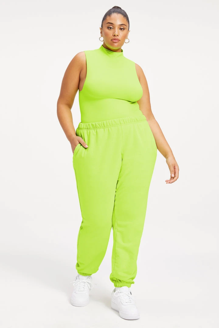 The sexy, draw cord waistband sits high on your tummy, but the baggy fit allows you to wear these sweats lower & looser on the hips. Roll the waist, or don’t. Hike up the leg, or not. Fullness works down to the ankle cuff, so the sweats slightly blouson over your ankle, if you’re into that.