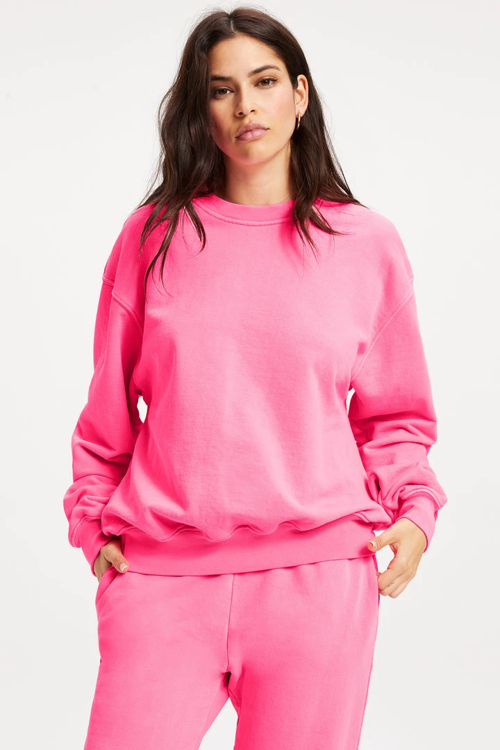 Looks kinda like your boyfriend’s crew neck, but so not. It’s better. Elongated, so it’s booty covering, and slim fit through the hip. Extra long sleeves gives the Boyfriend Sweatshirt attitude that feels almost too cool for the couch.