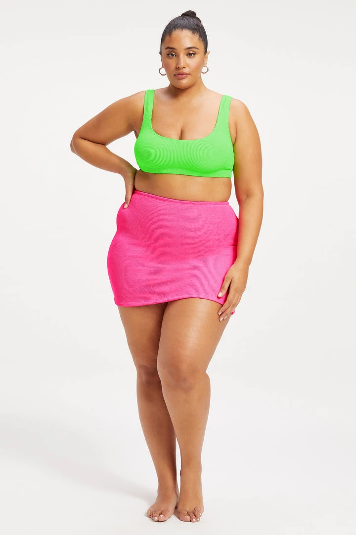 The first ever swim collection that stretches up or down a size while keeping its shape, so you buy once and it fits always. Introducing our first cover up in our favorite Always Fits crinkle swim fabrication.