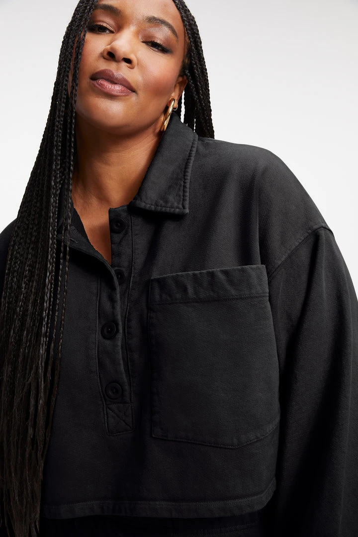 The Cropped Fleece Polo is a chic yet cozy staple piece for relaxing in. Wear yours with the matching Relaxed Fleece Pant.