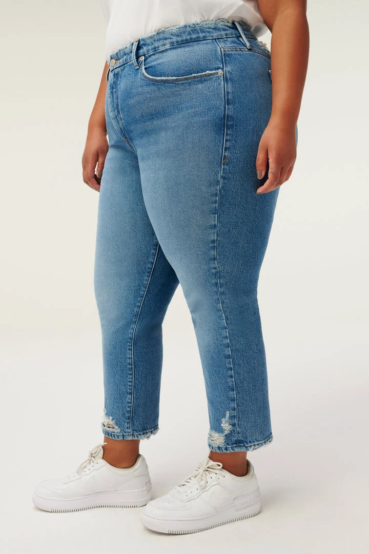 Lower in the rise. Laidback on the hips. Loose in the leg. A new petite fit made to flatter every curve, in a comfort stretch fabric.