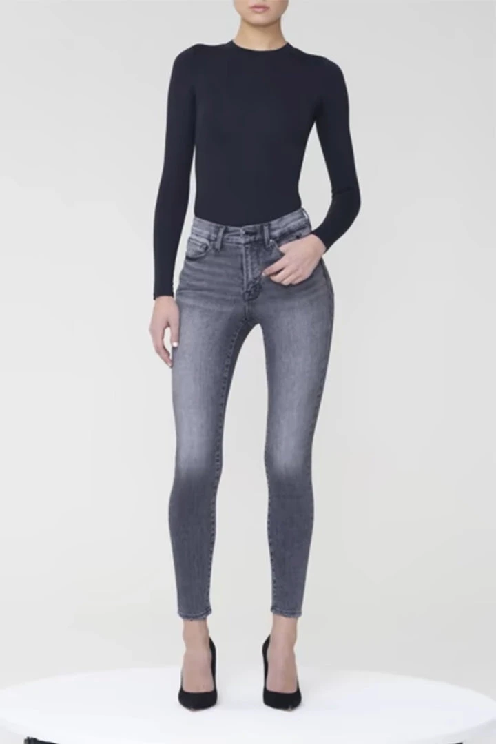 Our #1 best-selling high rise, skinny fit stretch jean in a classic dark gray wash. Made with a gap-proof contoured waistband and a high waist that’s sure to flatter every curve.