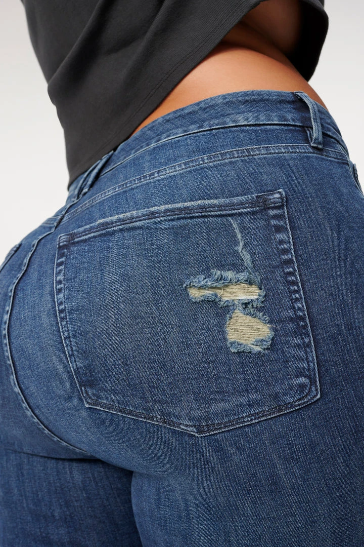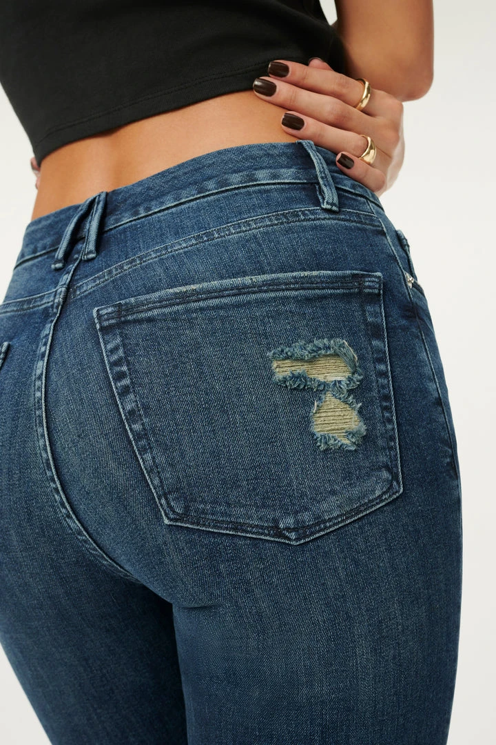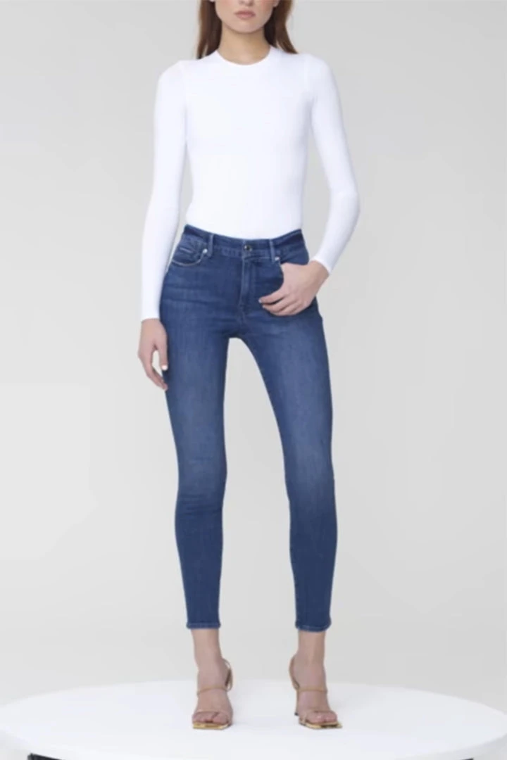 Our #1 best-selling high rise, skinny fit stretch jean in a classic dark blue wash. The Good Legs are made with a gap-proof contoured waistband and a high waist that’s sure to flatter every curve.
