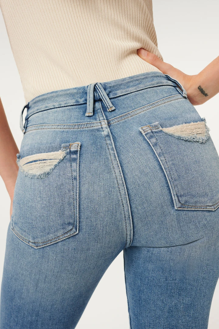 Our #1 best-selling high rise, skinny fit stretch jean in a classic medium blue wash. The Good Legs are made with a gap-proof contoured waistband and a high waist that’s sure to flatter every curve.