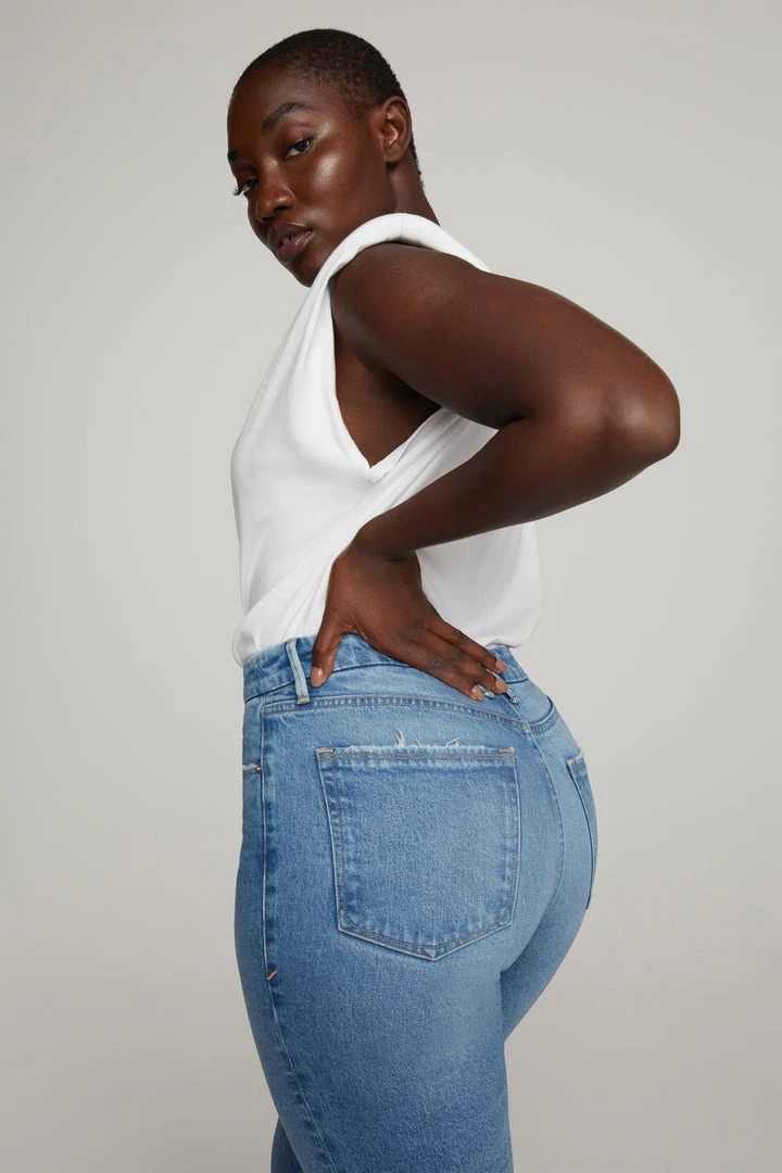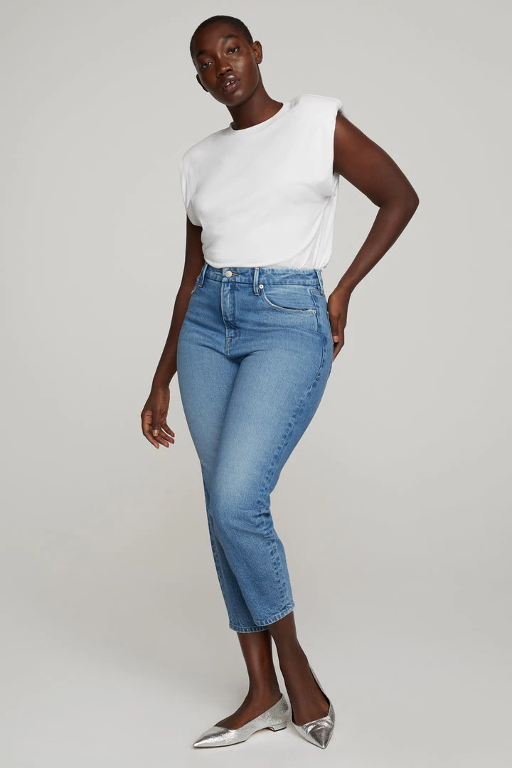 We’re obsessed with our latest Good Mom jean. These are not your mother’s jeans. Featuring a full leg tapered to hit right above the ankle, with our signature high rise to hold you in.