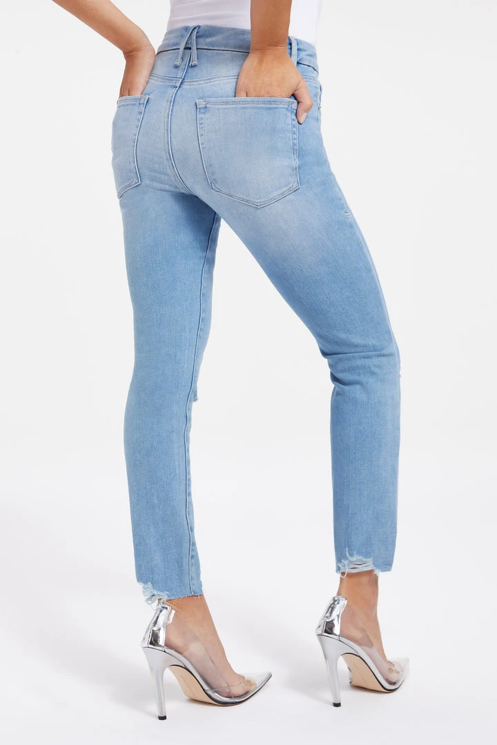 So much more than a shorter crop. We brought up the knee, lowered the rise, and hemmed it at just the right length. A modern, narrow-cut, mid-rise fit, tailored for 5โ4 and under.