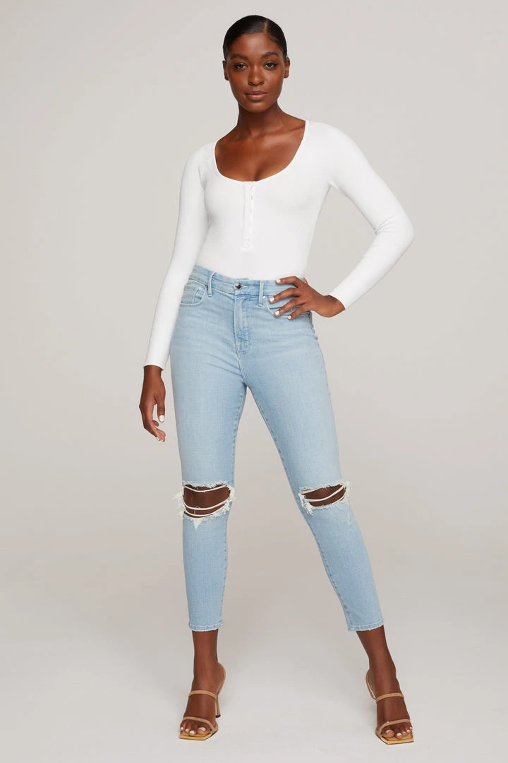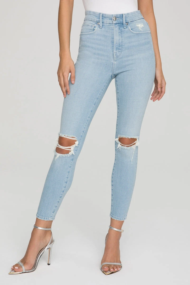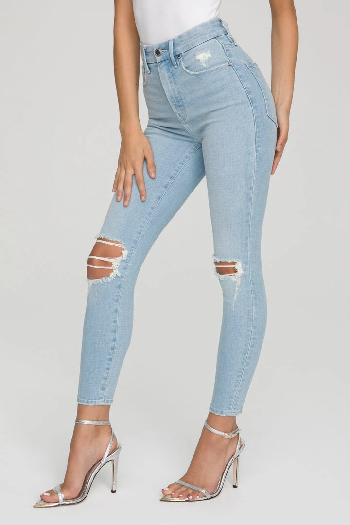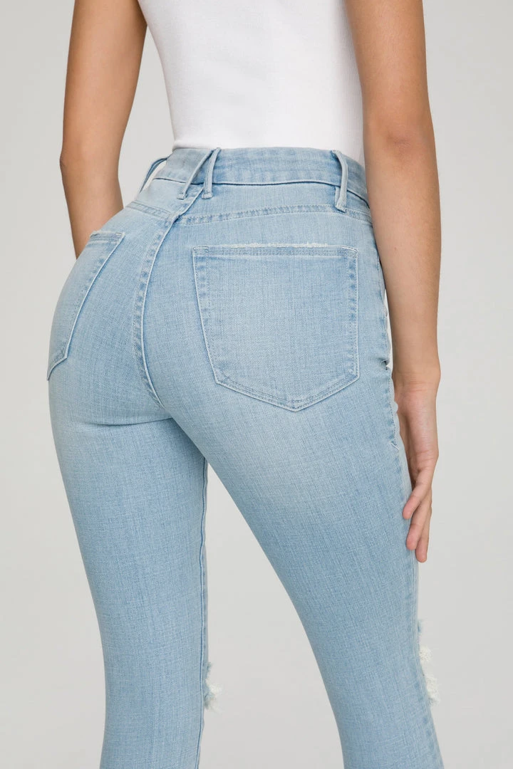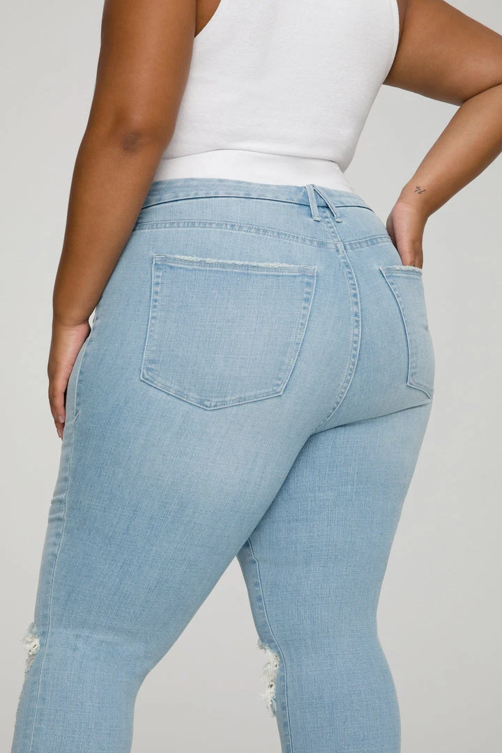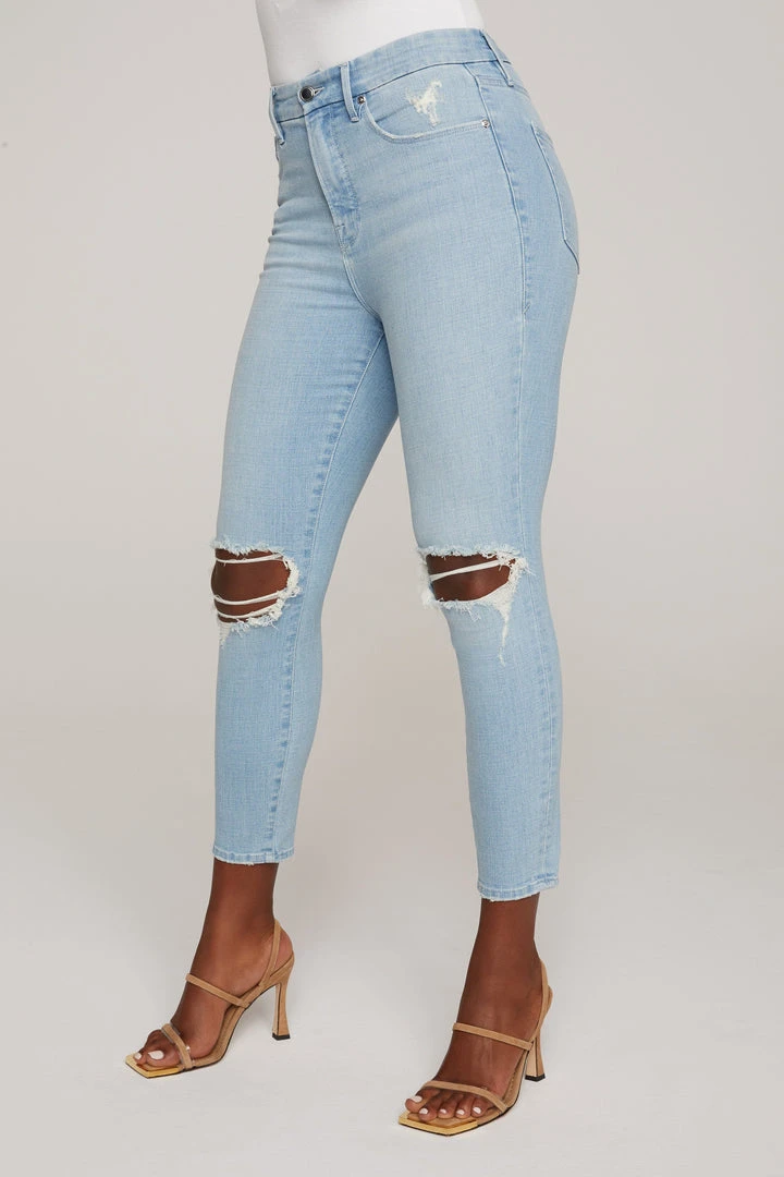 The classic Good Waist jeans with a cropped length. High rise skinny fit stretch jean that nips you in at the waist.ย