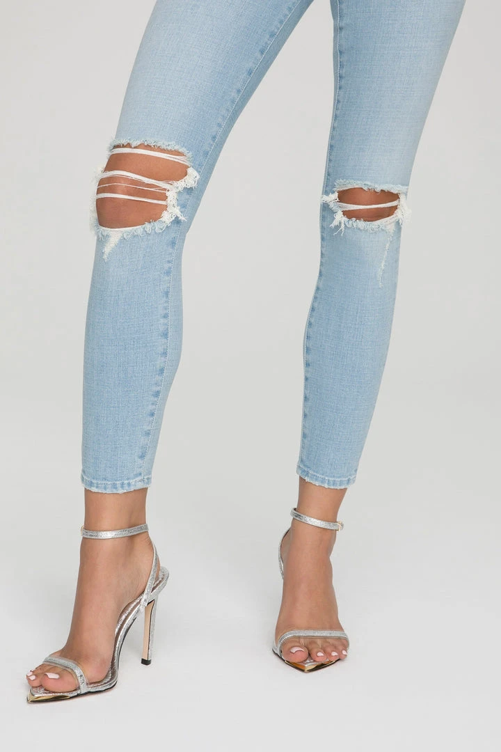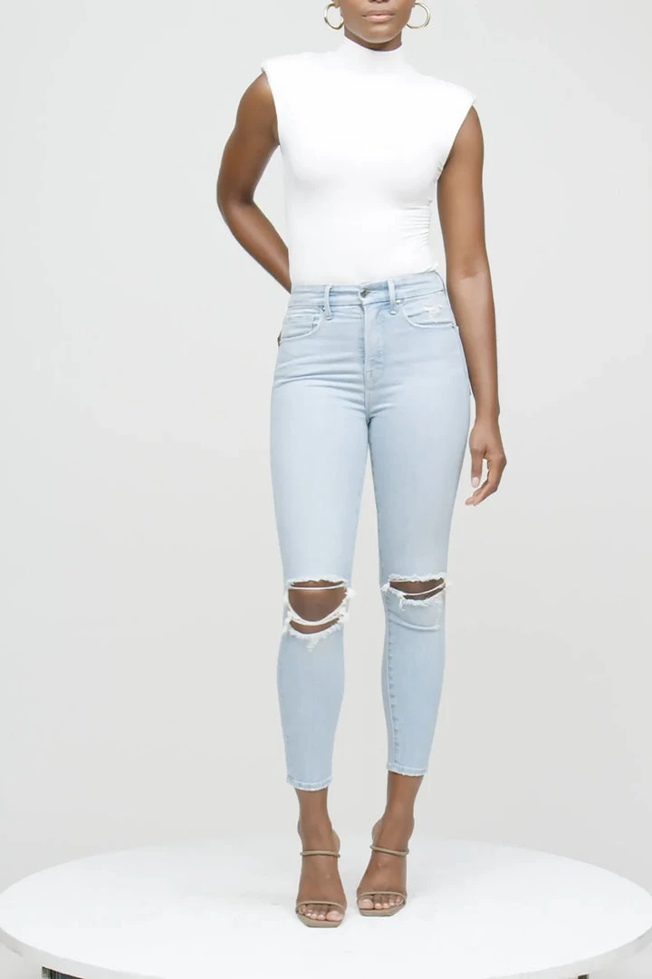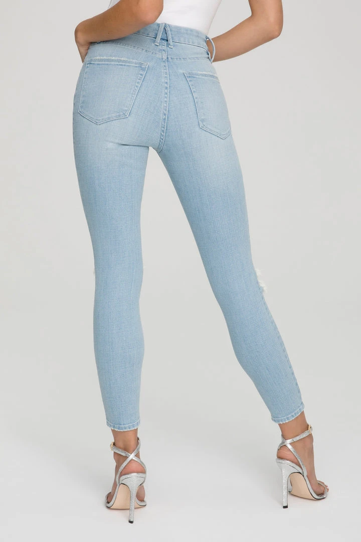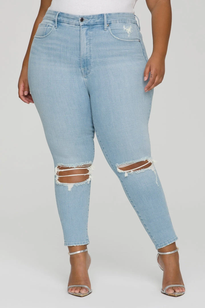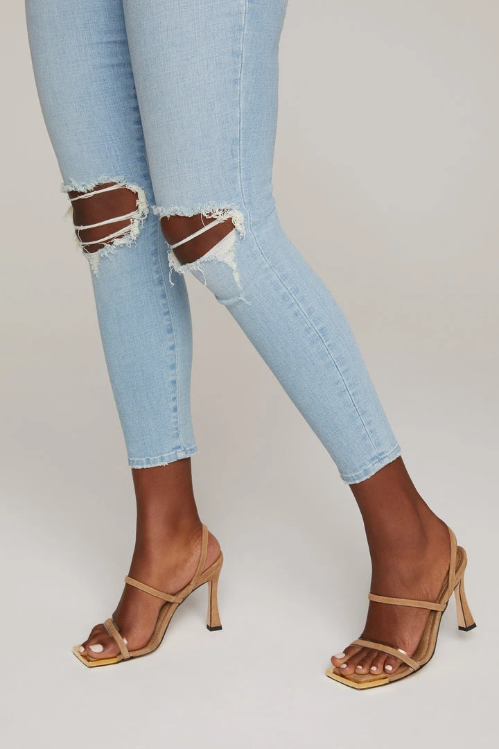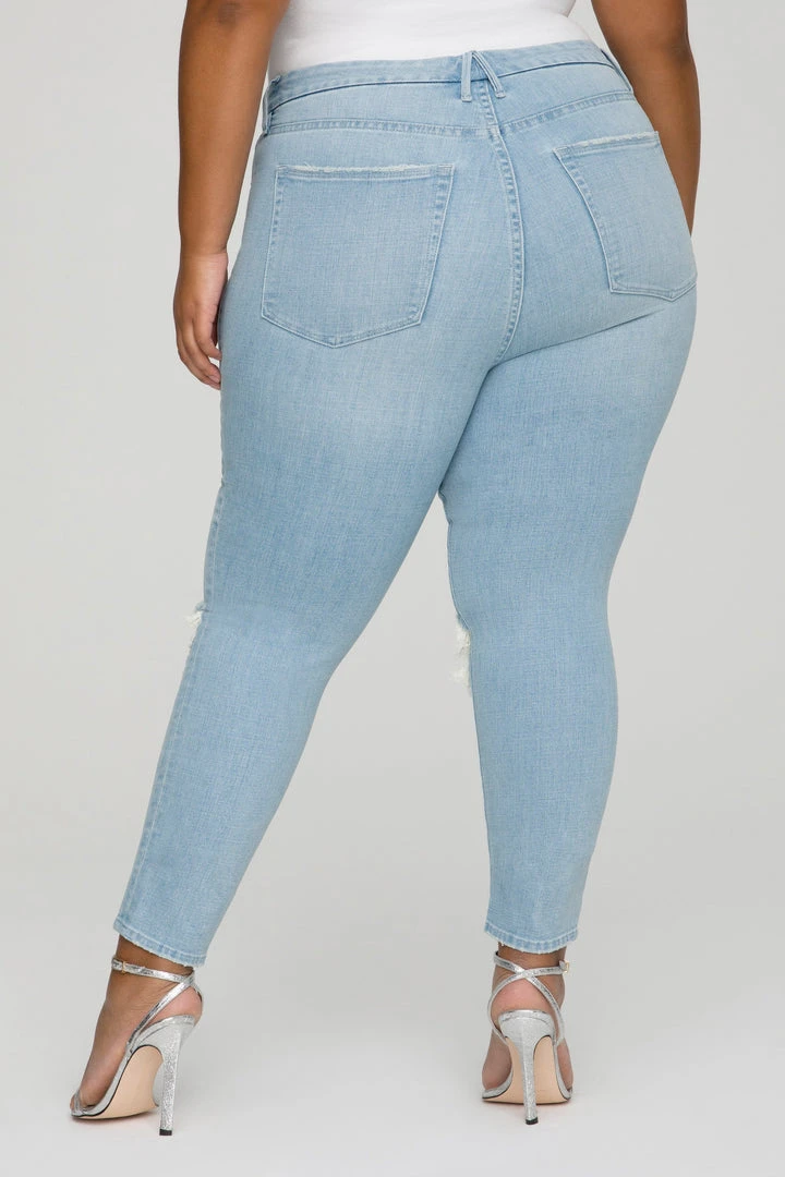 The classic Good Waist jeans with a cropped length. High rise skinny fit stretch jean that nips you in at the waist.ย