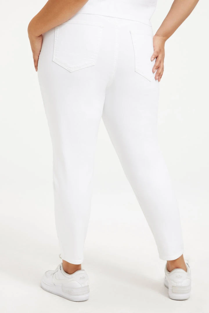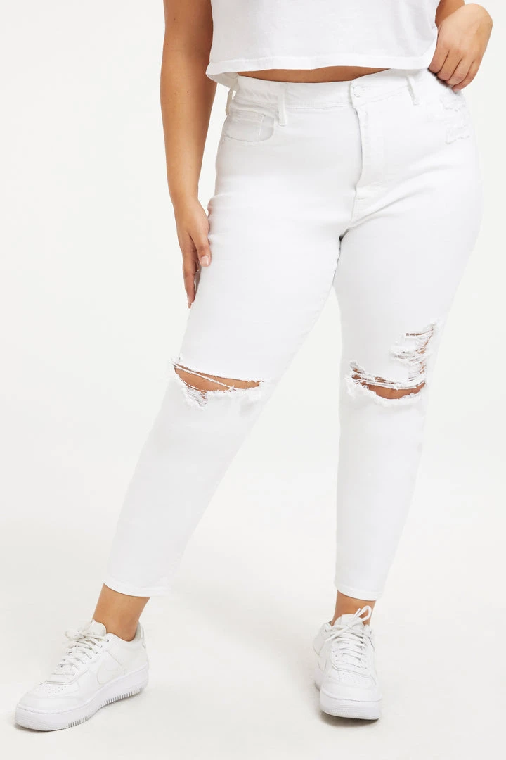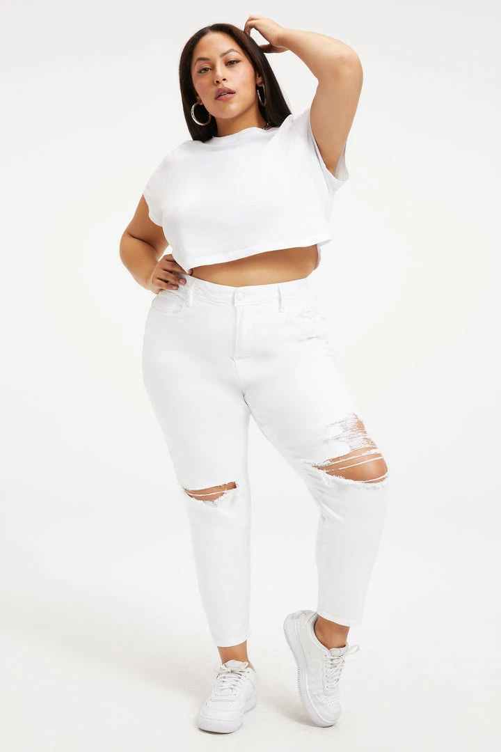 We’ve updated your favorite Good Waist jean with a cropped length and an added deep V yoke in the front. It’s a high rise skinny fit stretch jean that nips you in at the waist.