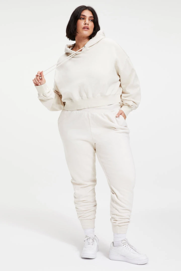 High waisted & slim fit through the hips, thighs and knees. The Good Waist Jogger accentuates your waist with a nipped in, sexy look, just like our best-selling denim fit. Inner drawcord waistband, rib knit cuffs and handy side pockets.