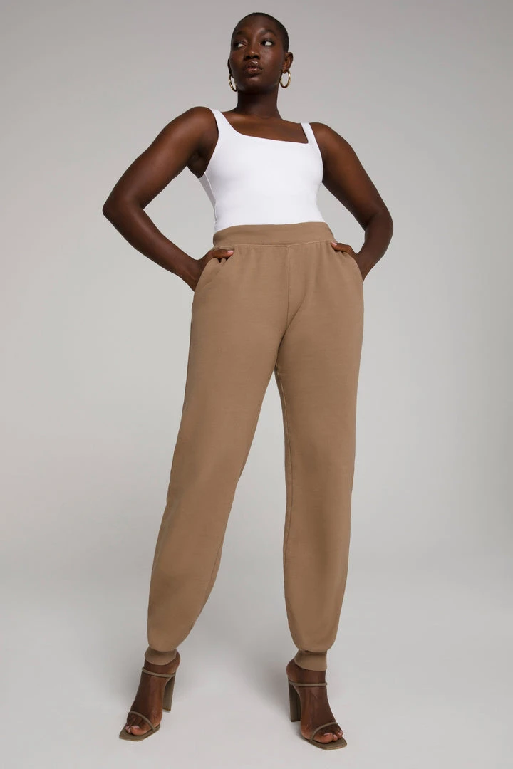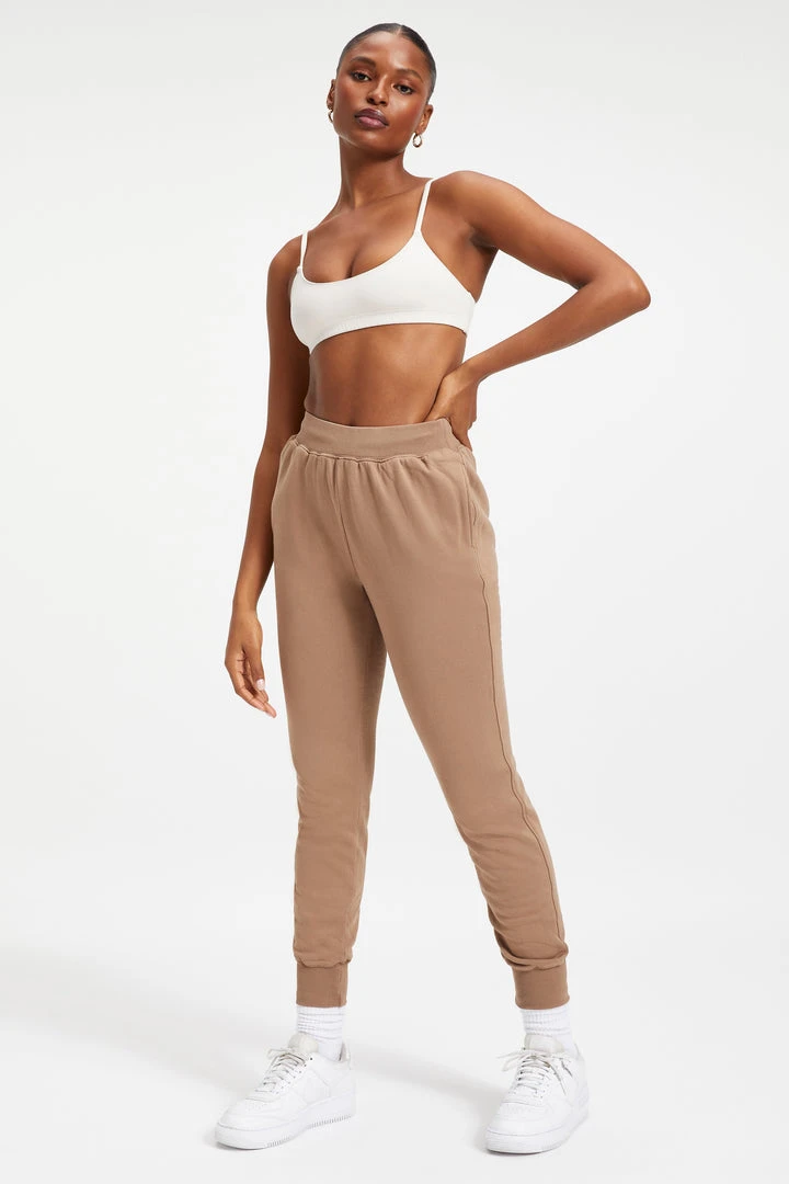 High waisted & slim fit through the hips, thighs and knees. The Good Waist Jogger accentuates your waist with a nipped in, sexy look, just like our best-selling denim fit. Inner drawcord waistband and handy side pockets.