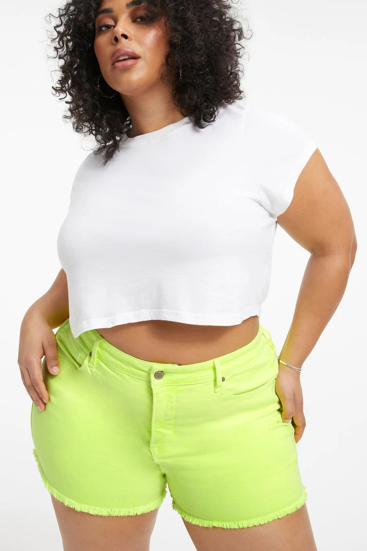 That sporty-chic ‘90s aesthetic, is as relevant as ever with our latest drop of skater inspired denim. The Good ’90s Short comfortably hugs your waist and feels roomier at the hem. The distressing and frayed hems throughout give them a worn in love feel.