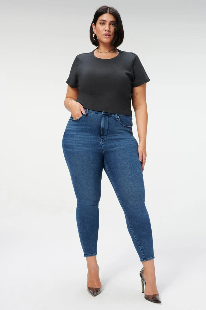 The classic Good Waist jeans with a cropped length. High rise skinny fit stretch jean that nips you in at the waist.