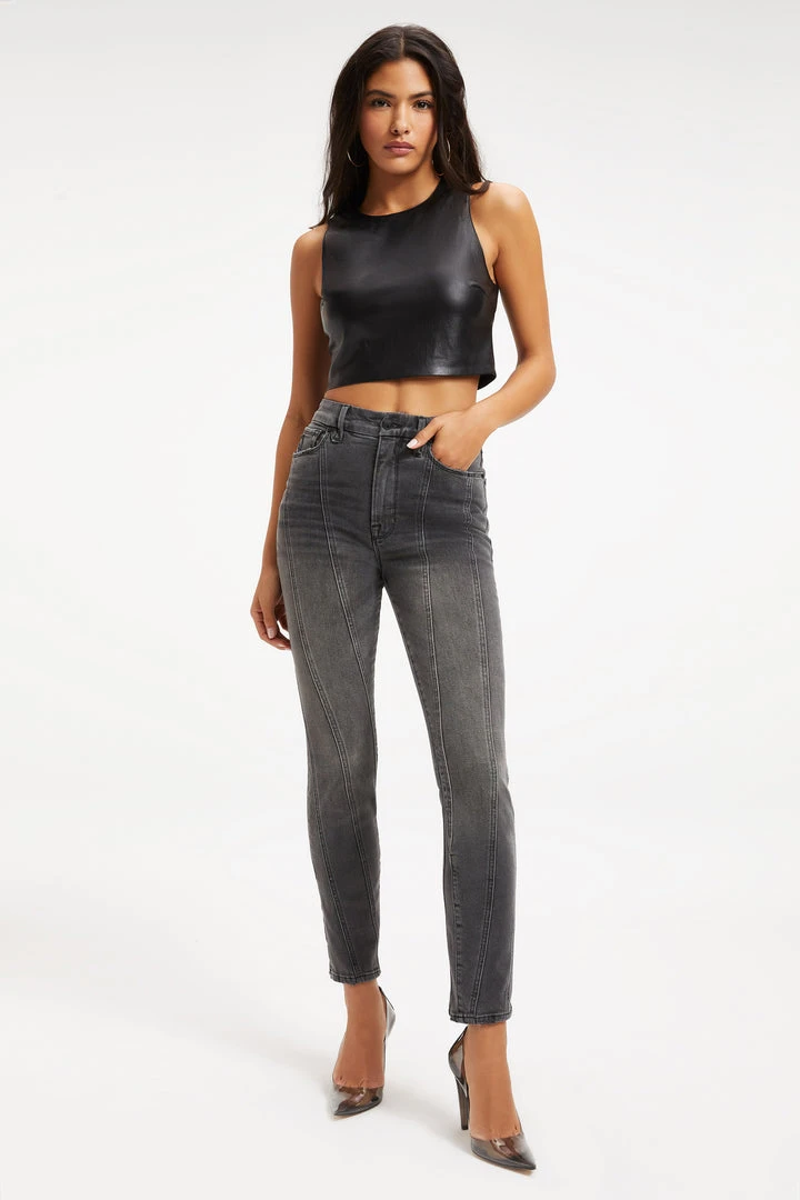 Word on the street isโฆ this is the new โITโ fit. Skinny-ish fit. Designed to make your legs look extra long, so youโll instantly look taller than you are! Pair with the seamed boyfriend jacket as your new go to outfit.