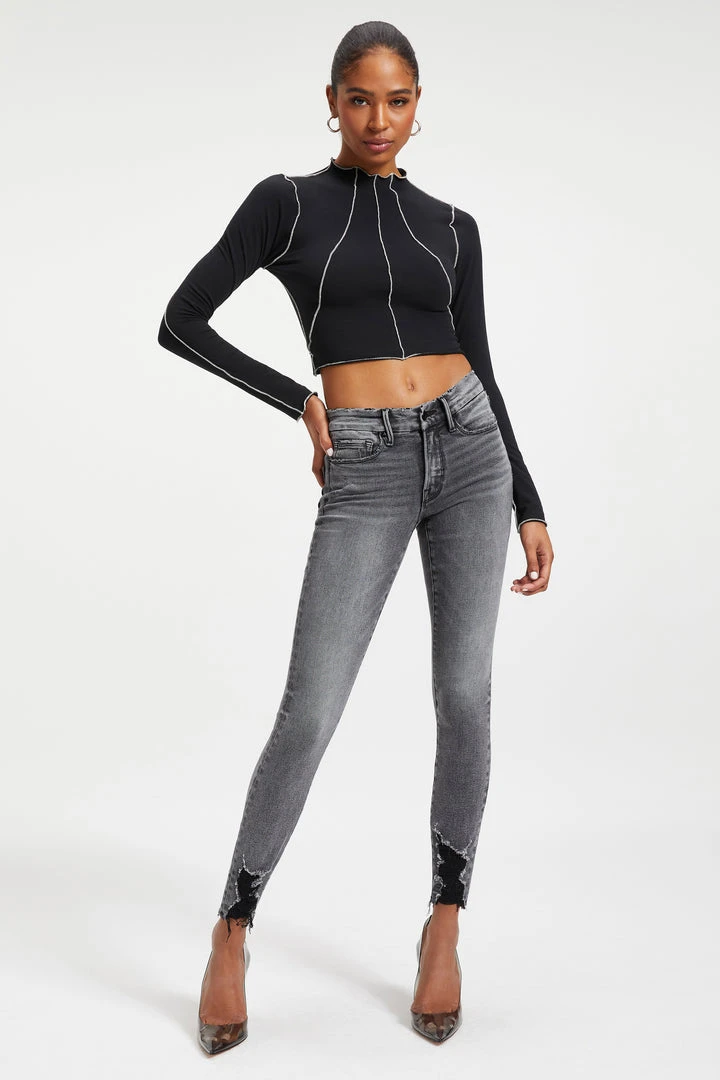 New 👏 GOOD AMERICAN High Waisted GOOD WAIST CROP | BLACK180 💯