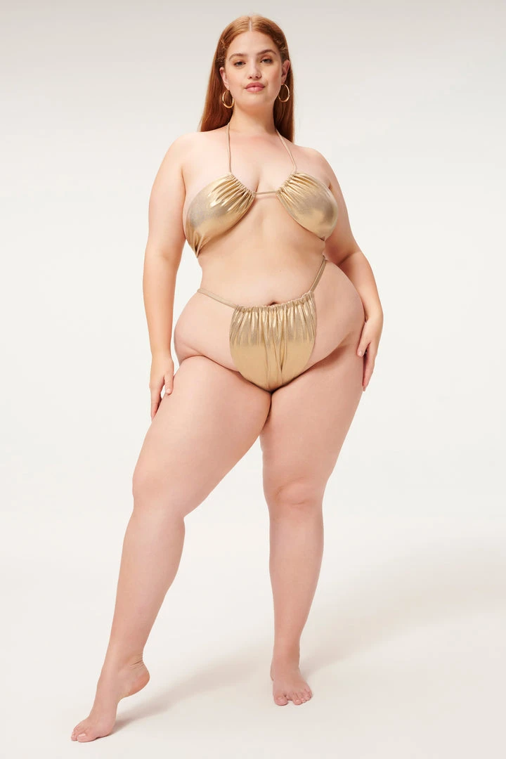 - Traditional supportive sexy halter with thick straps OR can be turned the other way and worn with the tiny ties around the neck and the thicker straps around the back