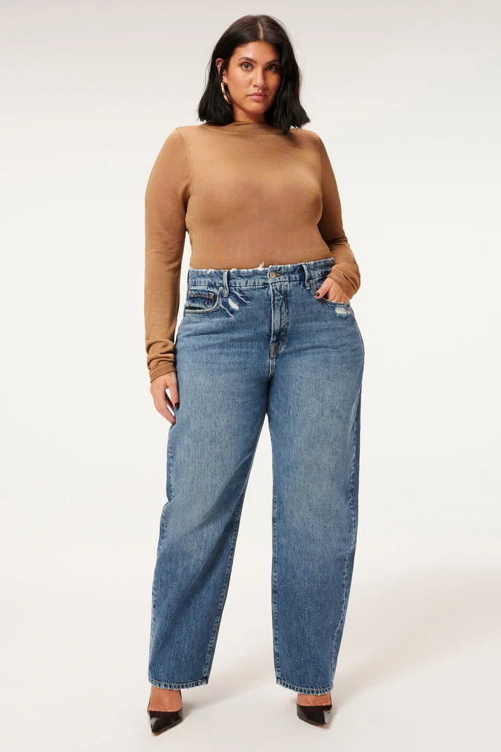 Hot Sale โ GOOD AMERICAN High Waisted GOOD CURVE STRAIGHT NATURAL FRAY HEM | BLUE858 โ๏ธ