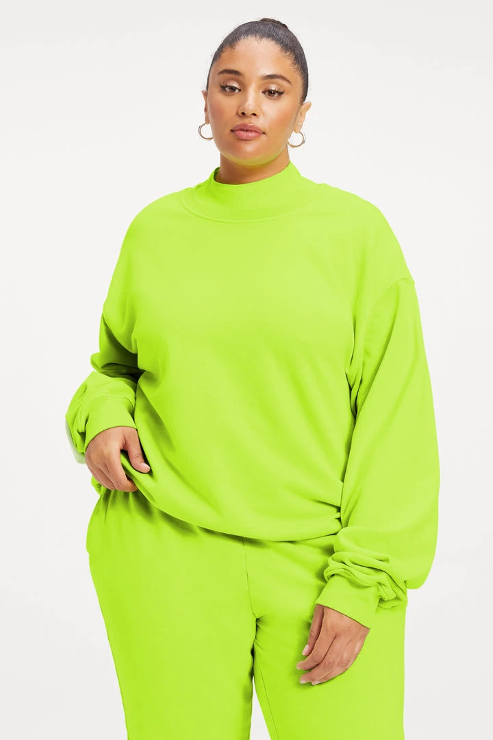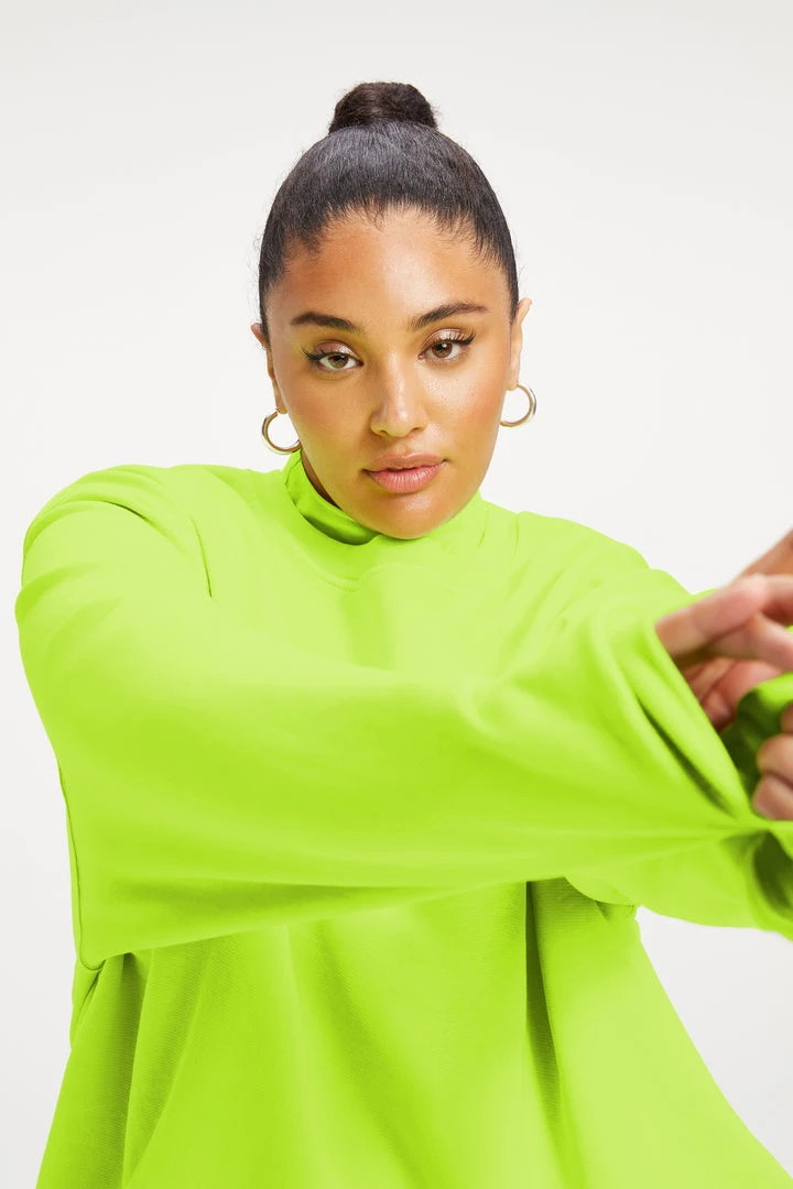 Looks kinda like your boyfriend’s crew neck, but so not. It’s better. Elongated, so it’s booty covering, and slim fit through the hip. Extra long sleeves gives the Boyfriend Sweatshirt attitude that feels almost too cool for the couch.