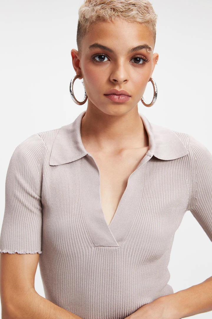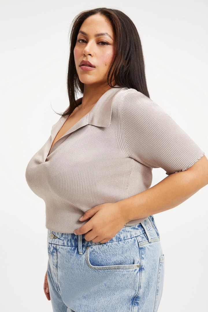 The perfect throw on polo for the girl that is always on the run. This day-to-night knit top paired with your favorite jeans is your new go to!