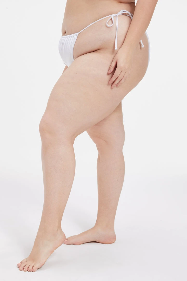 We made your favorite tiny bikini bottom even better with smaller a fixed waistband. Introducing the Shimmer Tiny Ties Bottom. Made especially for when you’re working on that tan.