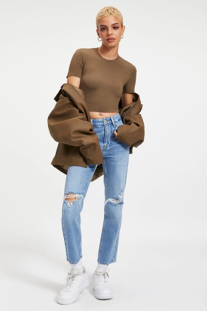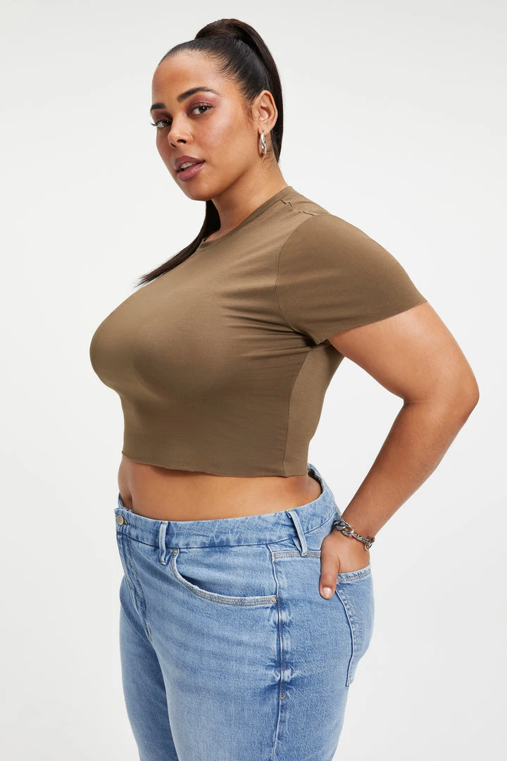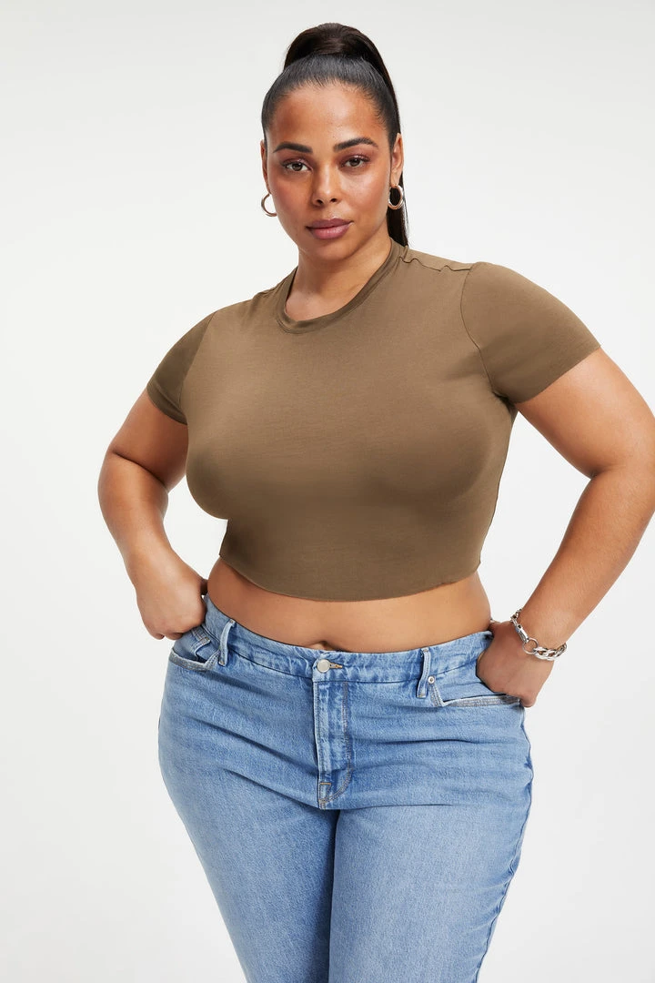 We know you have a soft spot for cozy comfort. Top it off in the Shine Silky Baby Tee. Dress it up. Dress it down. Style it your way.