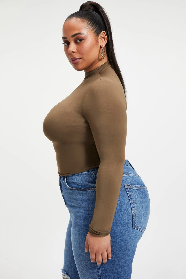 A chic Turtleneck with long sleeves made with a seamless shiny silky compressive fabric. Effortless style and the ultimate comfort wear from day to evening.