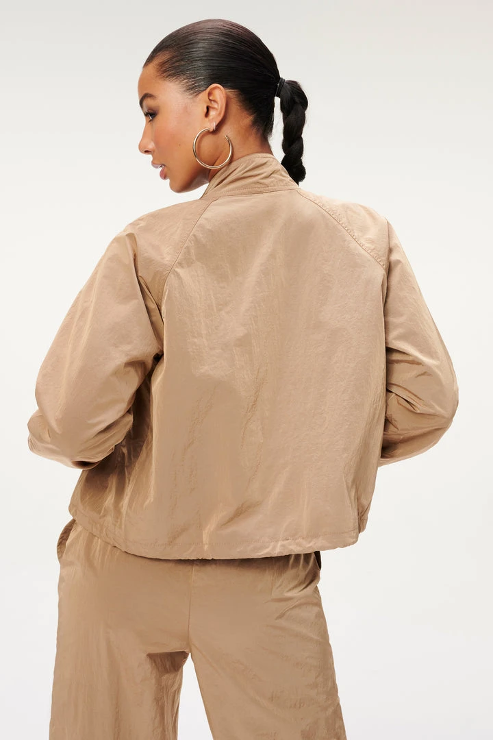 Snap and go in the new Shine Track Jacket. This lightweight nylon jacket is perfect for a day spent running errands.