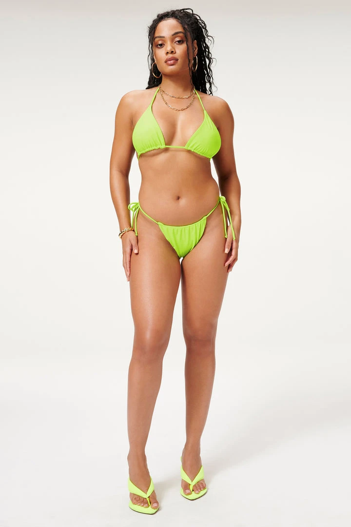Delicate and sexy this is your tanning suit for the summer. Introducing the Tiny Ties Triangle. Our take of the classic triangle top, now with barely there ties.ย