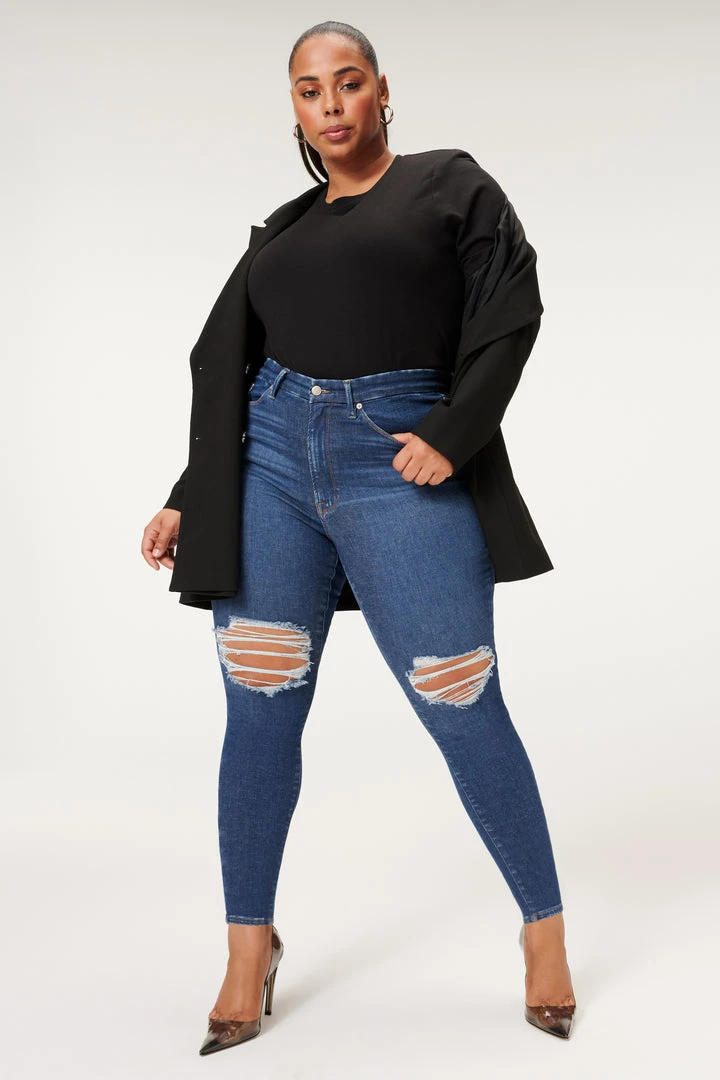 Our most innovative jean EVER. Always Fits from Good American features a one-size-fits-four design that adapts to your body’s changes, guaranteeing the perfect fit every time. Bye bye, traditional sizing. Now available in 35″ inseam.