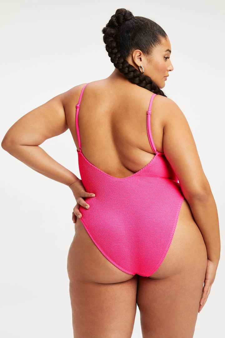The first ever swim collection that stretches up or down a size while keeping its shape, so you buy once and it fits always. Introducing the Always Fits One-Piece. Nothing goes better with a tan than this luminescent one piece.