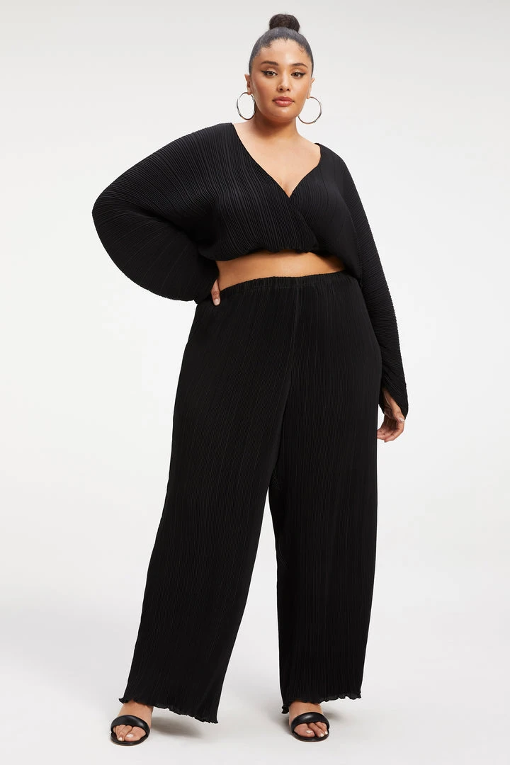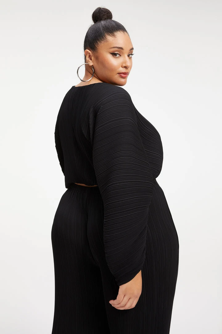 Play with texture in our Always Fits Plissé Sculpted Top. It showcases a glossy shine and luxurious feel of this soft, pleat fabric. It has a customizable neckline so you can adjust it to your pleasing. Pair with our Plissé Wide Leg Pants for the ultimate day to night look.