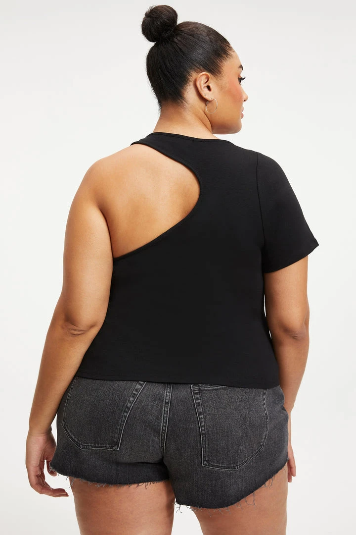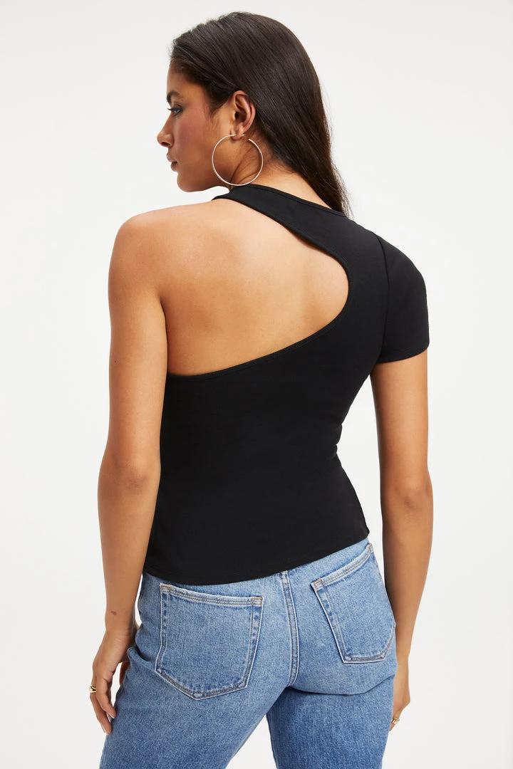 Time to spice up staple tees with the Asymmetrical Open Back Tee. Designed with an open back cut out that will take your look from day to night. Wear with your favorite jeans our trousers to finish off the look.ย
