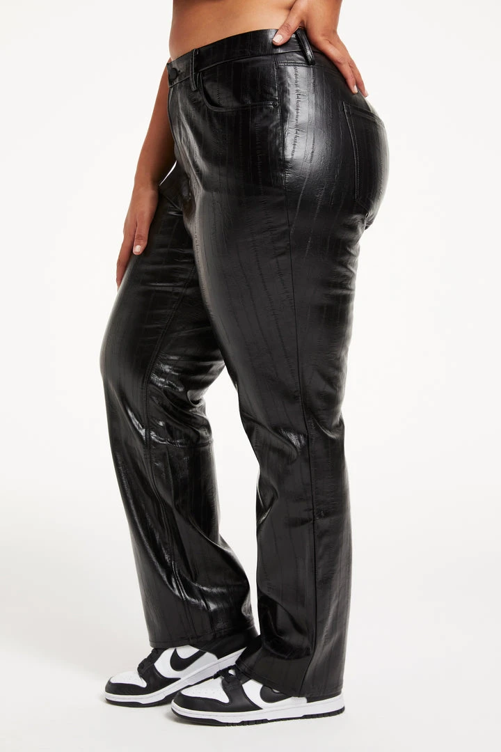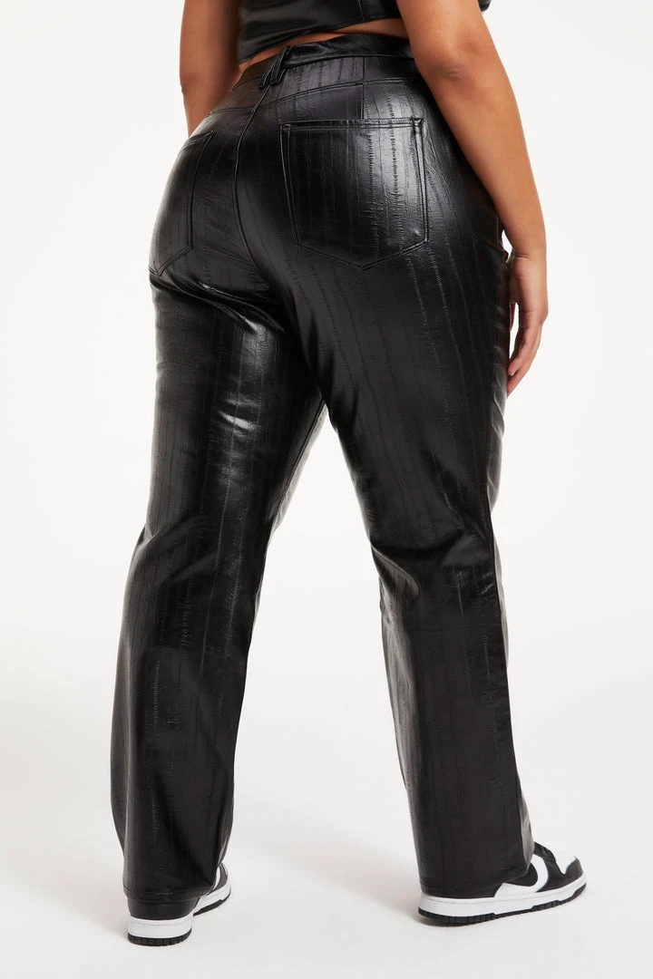 We have updated our fan favorite jean in our Better Than Leather fabric, and it is going to be your new go-to pant to wear year round. Our new ’90s-inspired leather pant is roomy, comfy, and still sexy. Throw on your favorite kicks for that chill yet chic ‘90s look any day of the week.