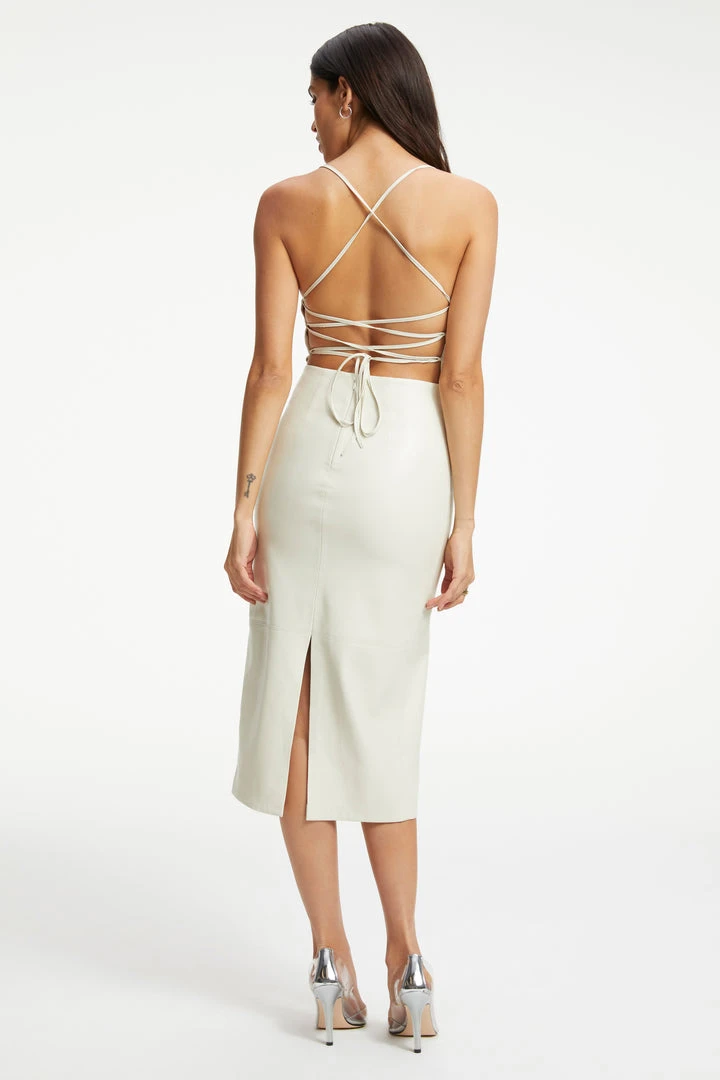 What’s Up, Legs? Whether you’re out to play or on vacay, the Better Than Leather Vacay Dress is a one and done situation. Lace up, and go off.