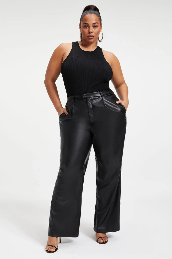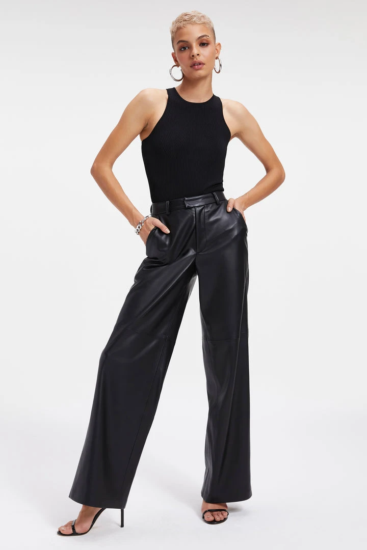 These eye-catching, soft to the touch, pleated high-rise waist and wide legs trouser are bound to stop traffic. The Wide Leg Better Than Leather Trouser are perfect for day to night. Pair with the Better Than Leather Crop top to complete the look.