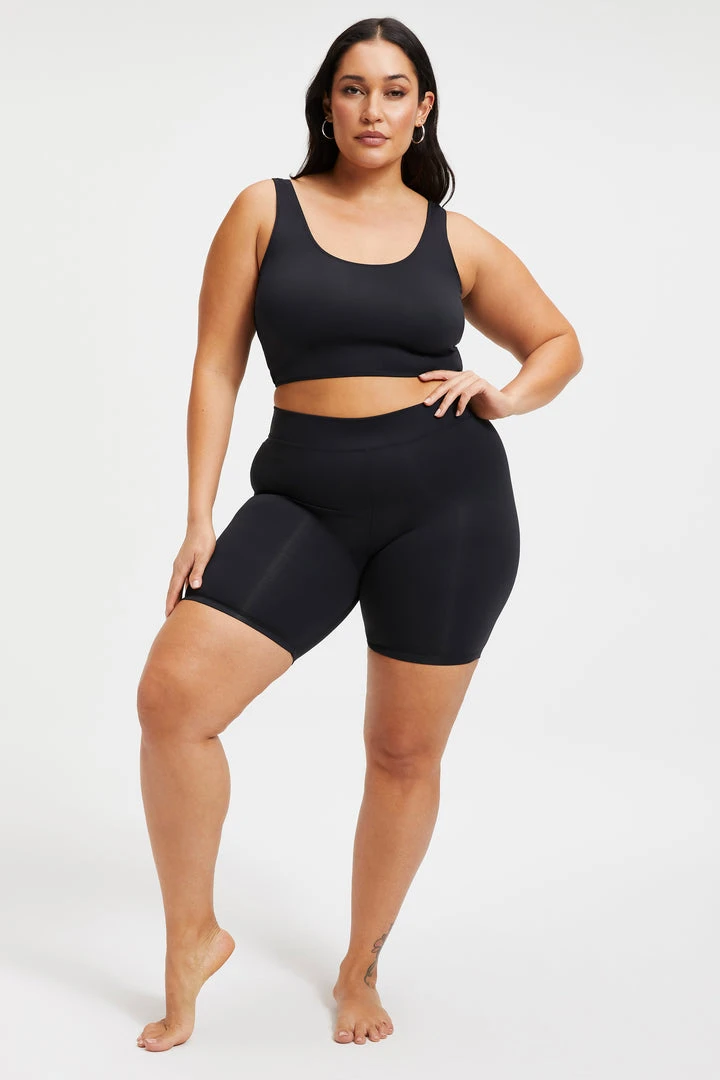 Your new essential one piece for the summer that can act as a bathing suit, but also can run errands in on a hot summer day. The Good Compression Swim Short is cut from a soft compression fabric that keeps molds to your body while comfortably holding you in. This is the curve-hugging, shape-enhancing, confidence boosting essential for your summer.