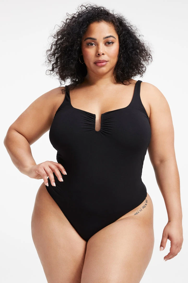 You won’t go unnoticed when you’re wearing the new U Ring Ruched Bodysuit. This bodysuit is made to show off all your best assets. Dress it up or dress it down for an instant head turner wherever you go.