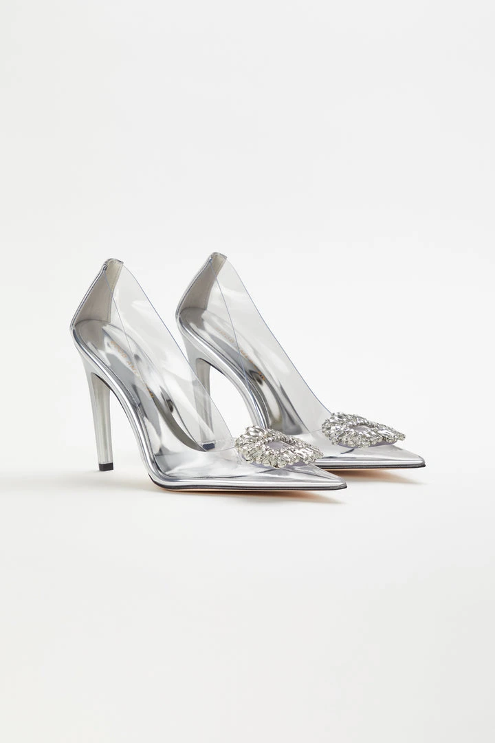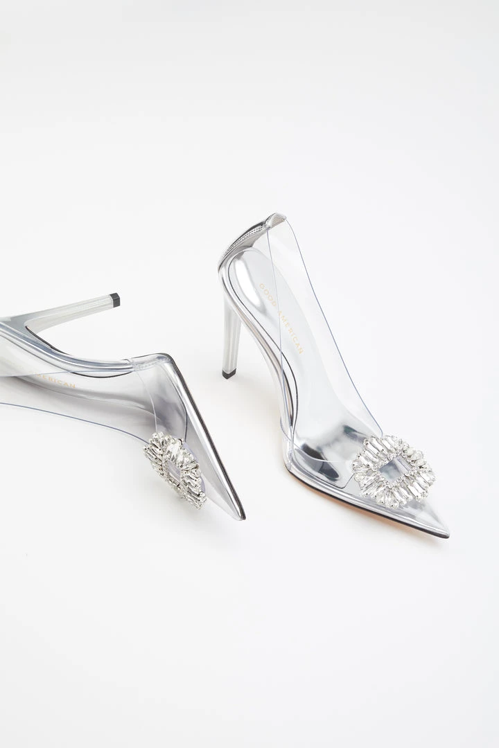 Slip on a shoe thatโs crystal clear and totally hot. Donโt miss out on this iconic clear heel moment.ย Now featuringย statement gemstonesย fit for a queen.ย