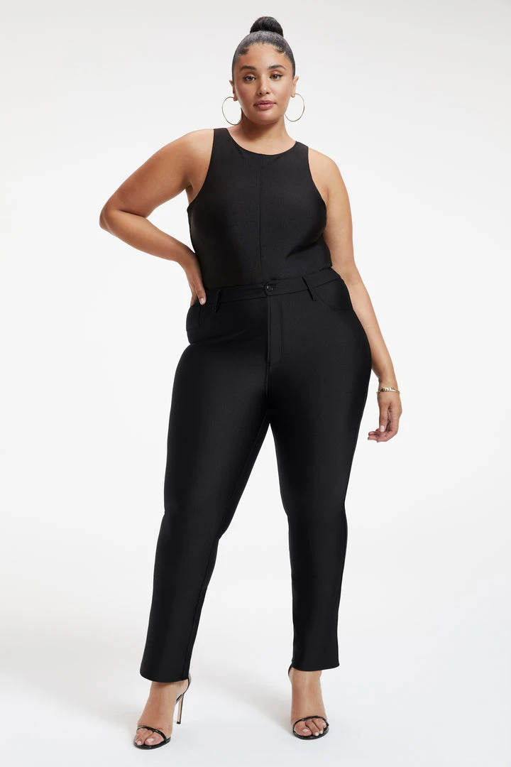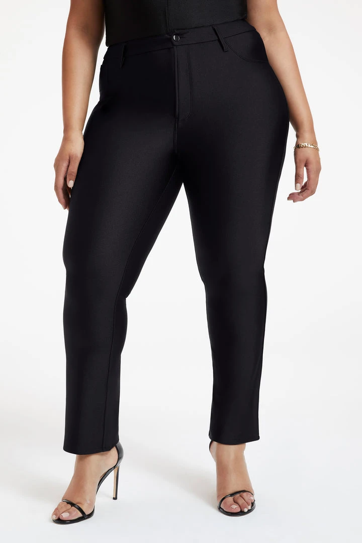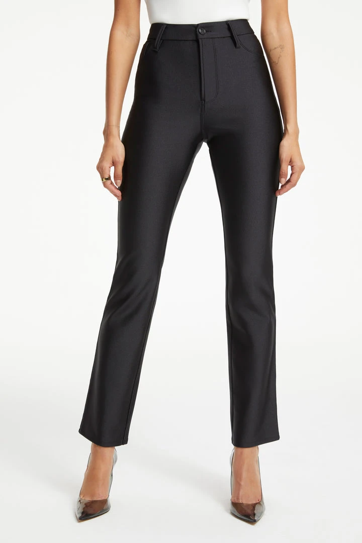 Be chic yet comfortable in our Compression Straight. Featuring our fan favorite Good Straight denim cut a compressive shine fabric that is lightweight yet breathable for all day wear. It still nips you in at the waist, and is high in the rise giving you the best butt ever. It also features a small flare at the bottom of pant to make your legs instantly look longer. This is the curve-hugging, shape-enhancing, confidence boosting essential for your wardrobe.