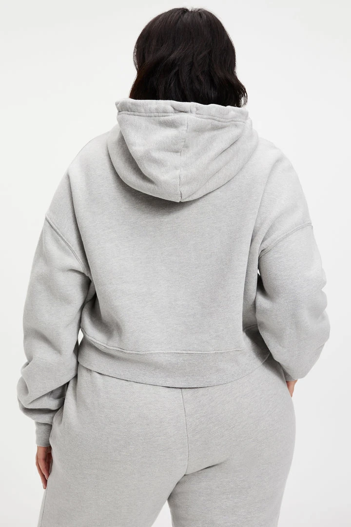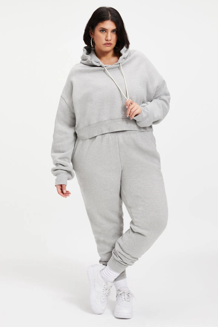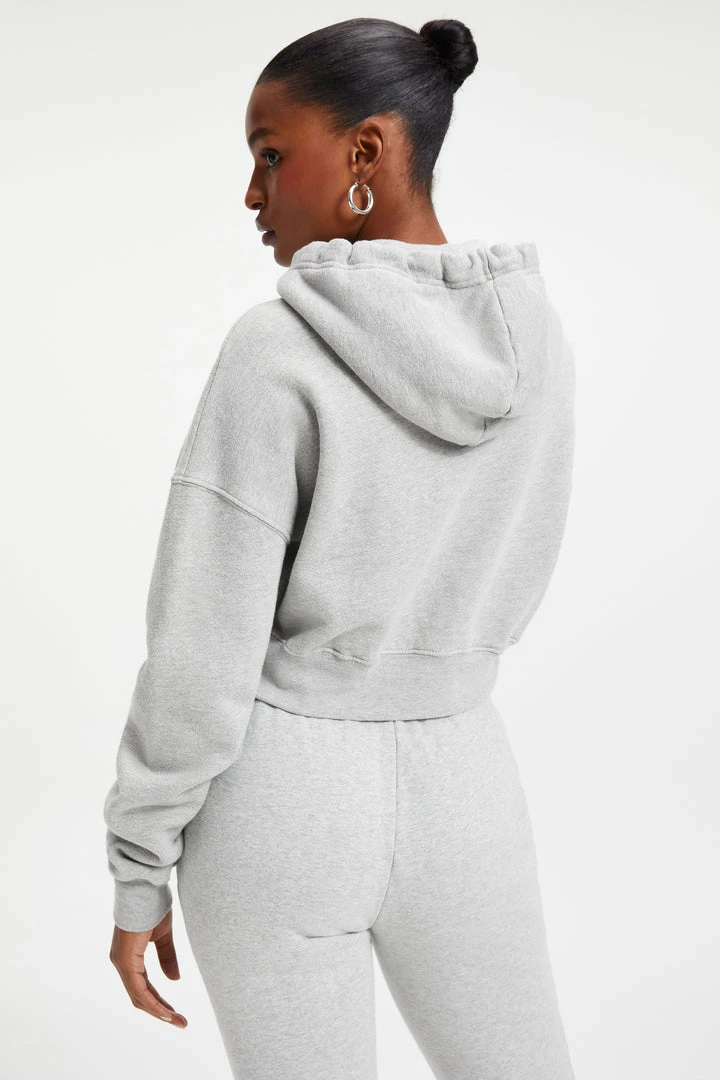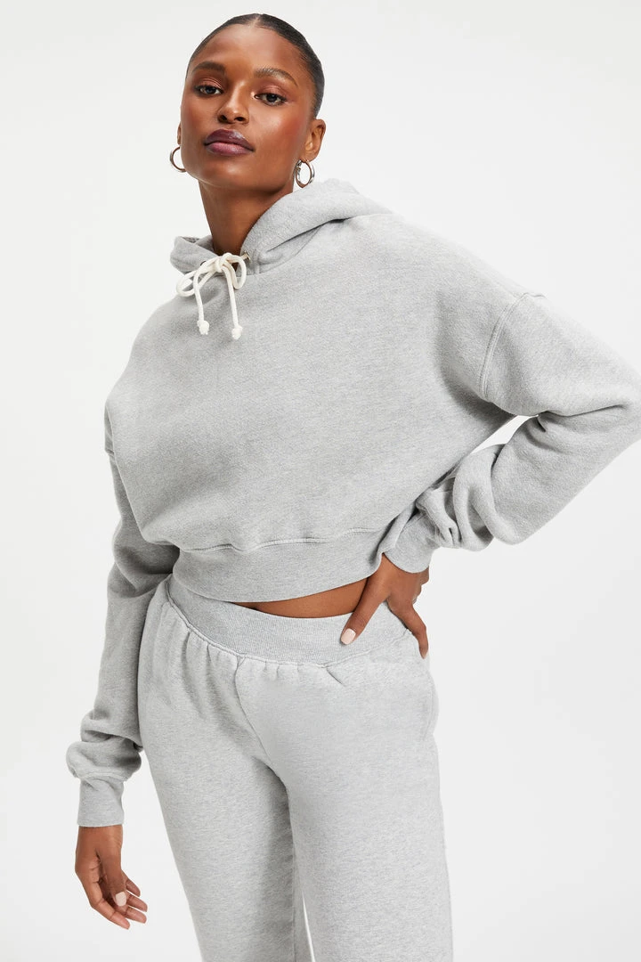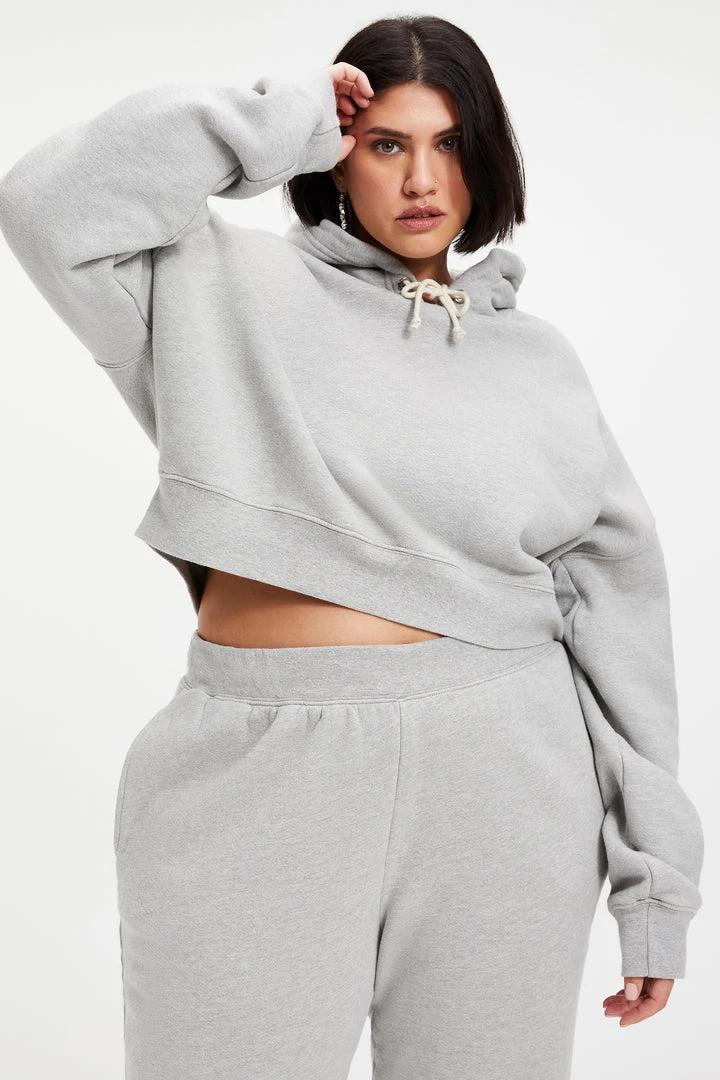 Pure comfort, still sexy. Maybe the hoodie that you and Khloé both love most? The Cropped & Cool Hoodie features a wide dropped shoulder, with super long sleeves. Generous knit rib cuff at wrist and waist for snug cozy feel against your skin.