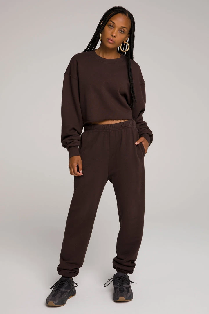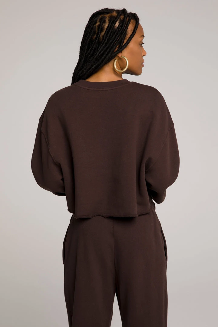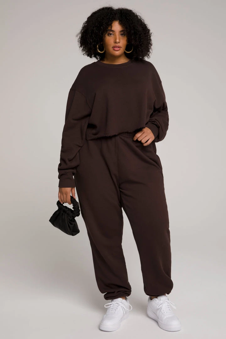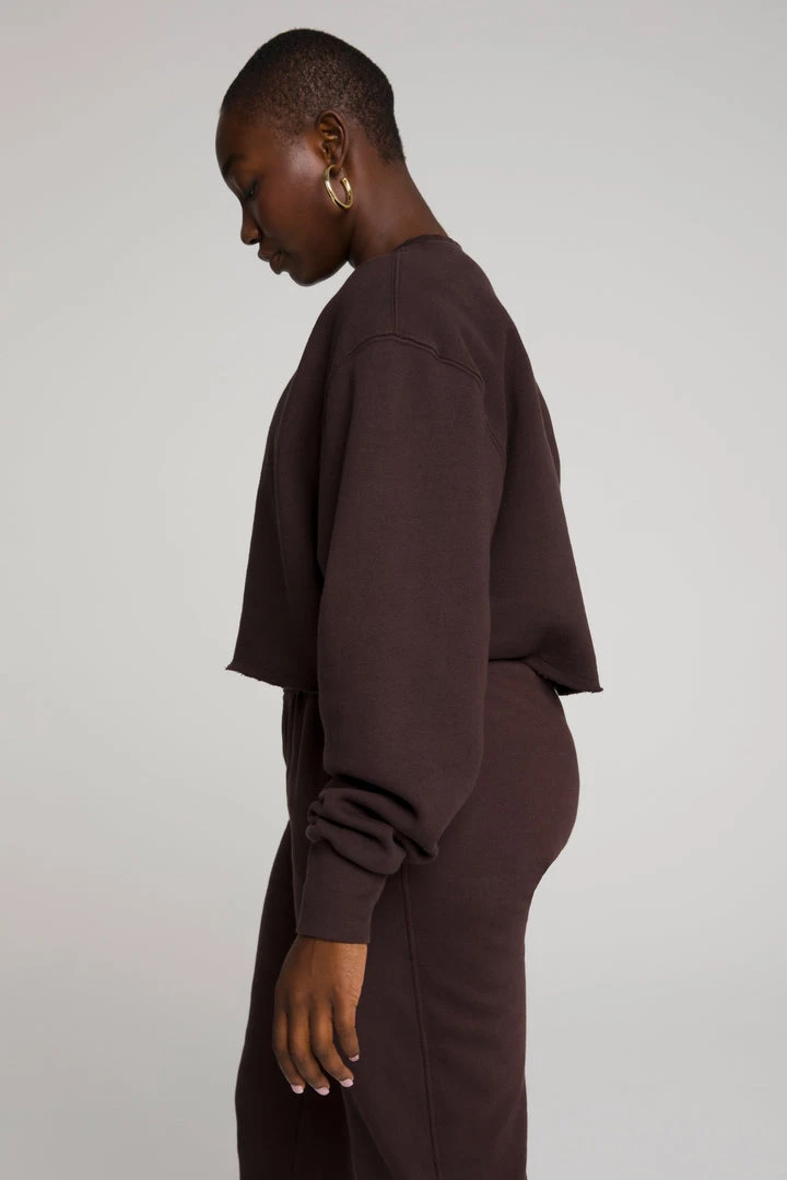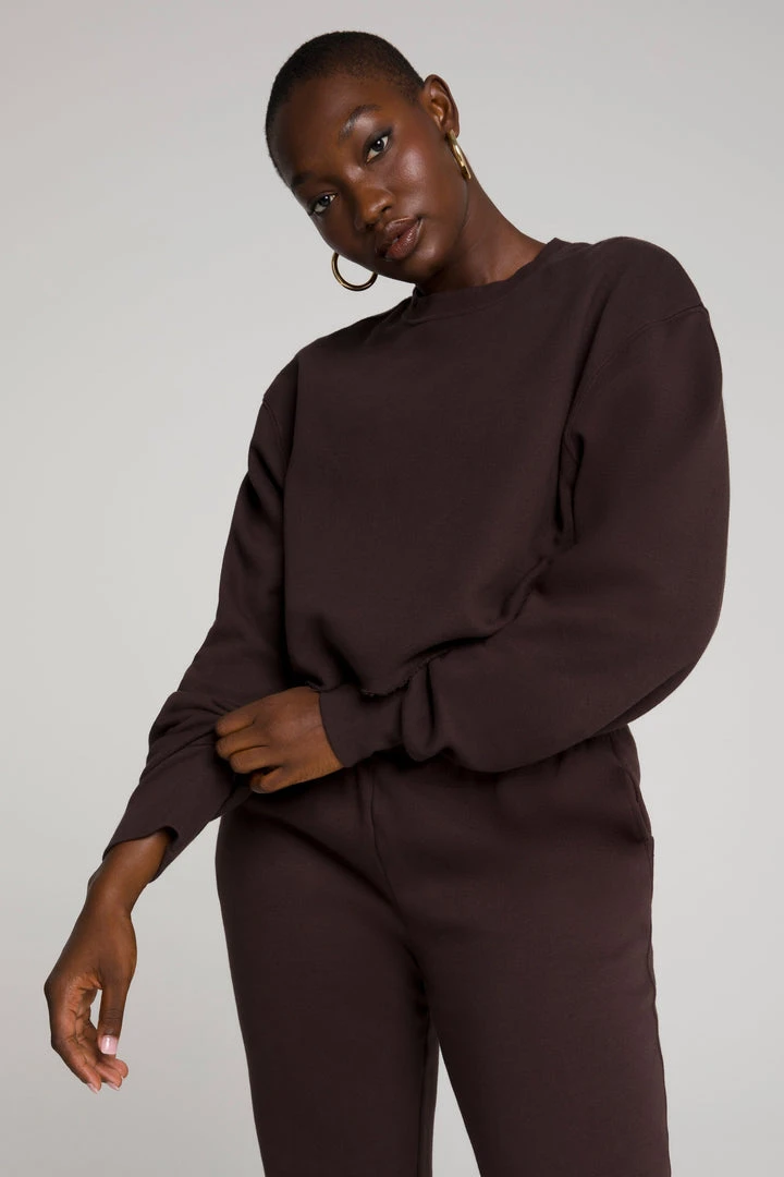 The Cropped & Cool Sweatshirt is your go-to exaggerated crew silhouette, and has ribbed side panels to hold this top away from your body. Dropped shoulder and extra long sleeve proportion give a baggy vibe, but not! Super cute with bike shorts or sweats.