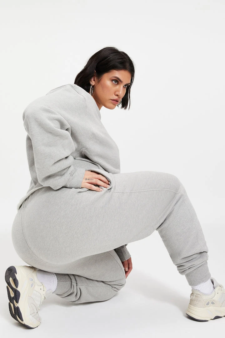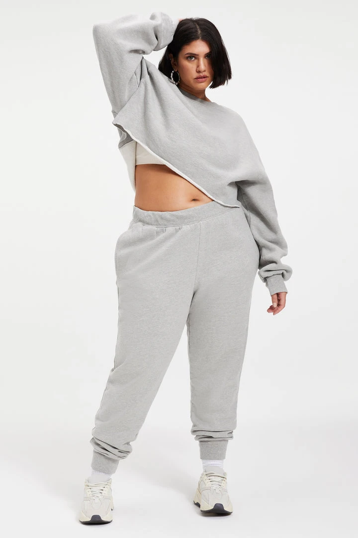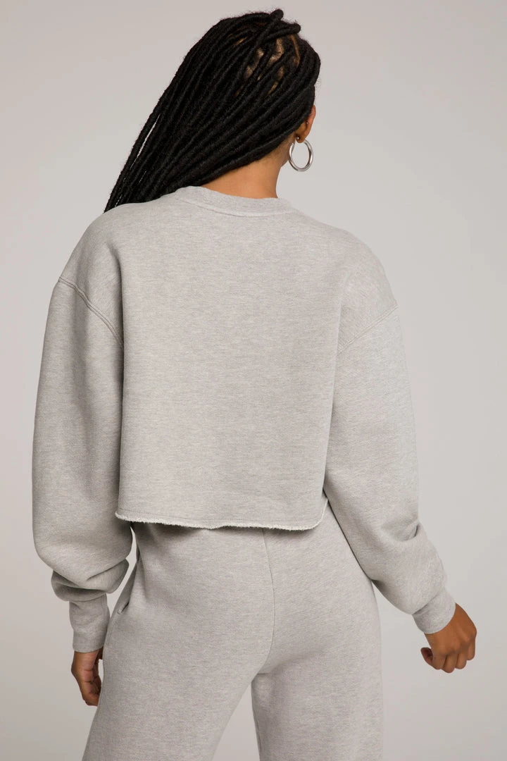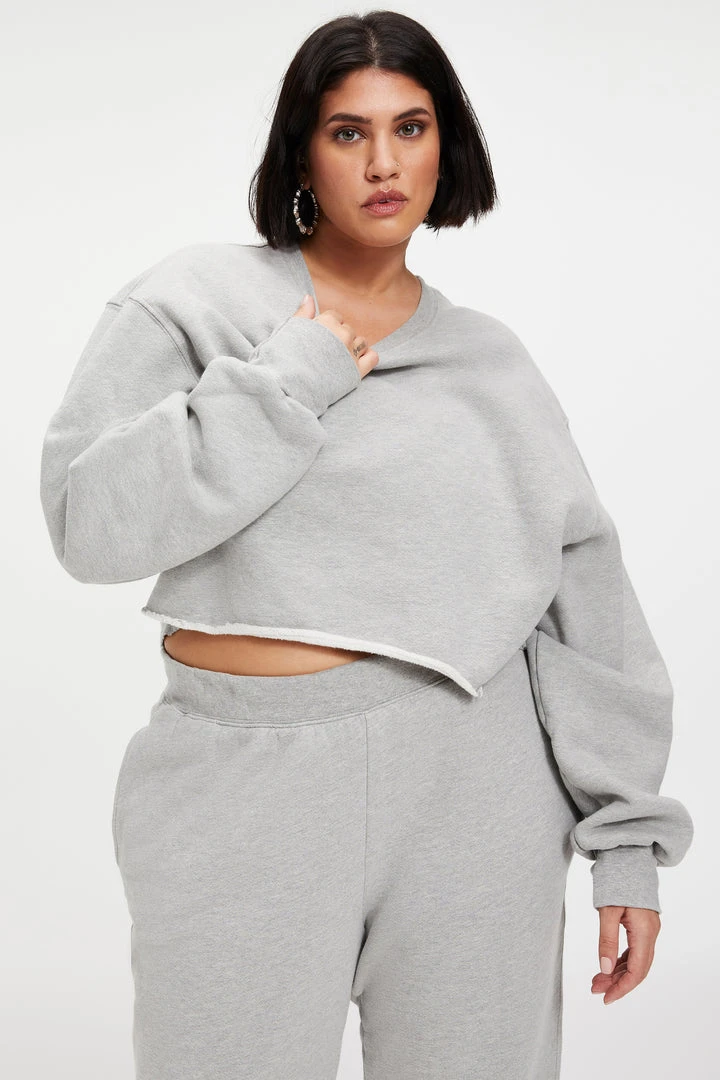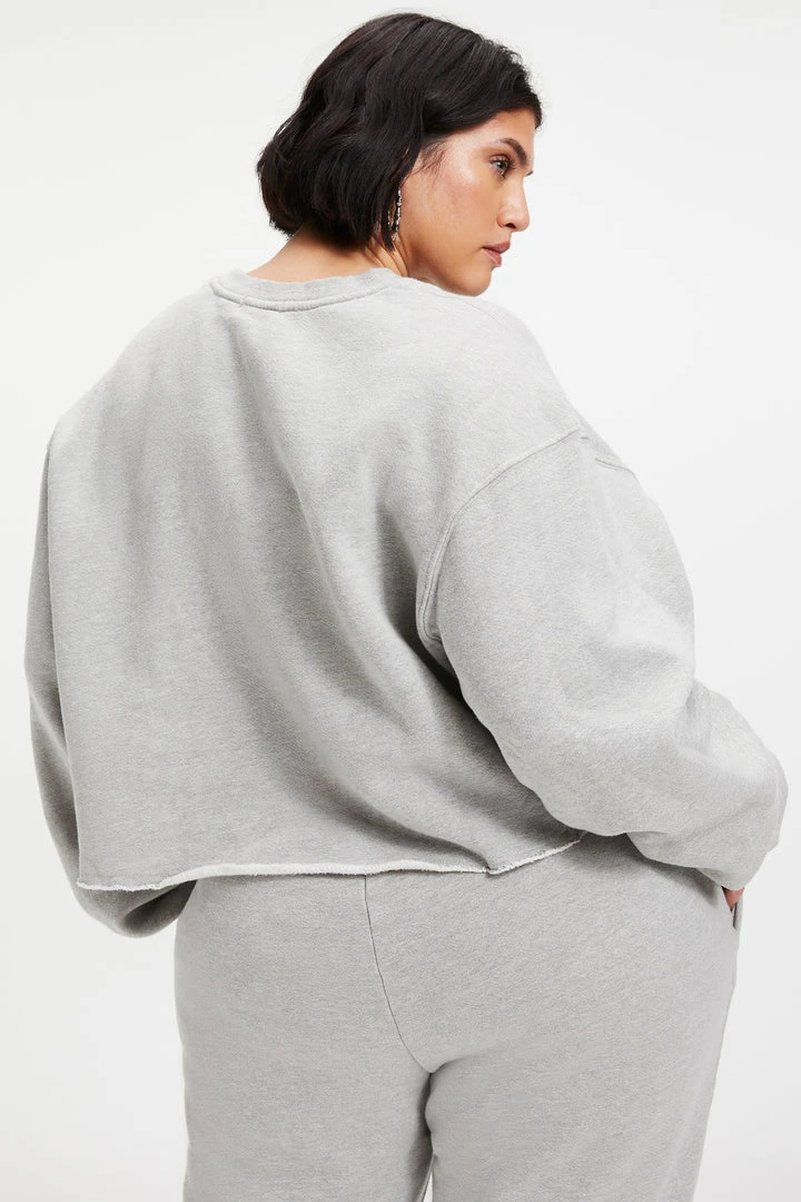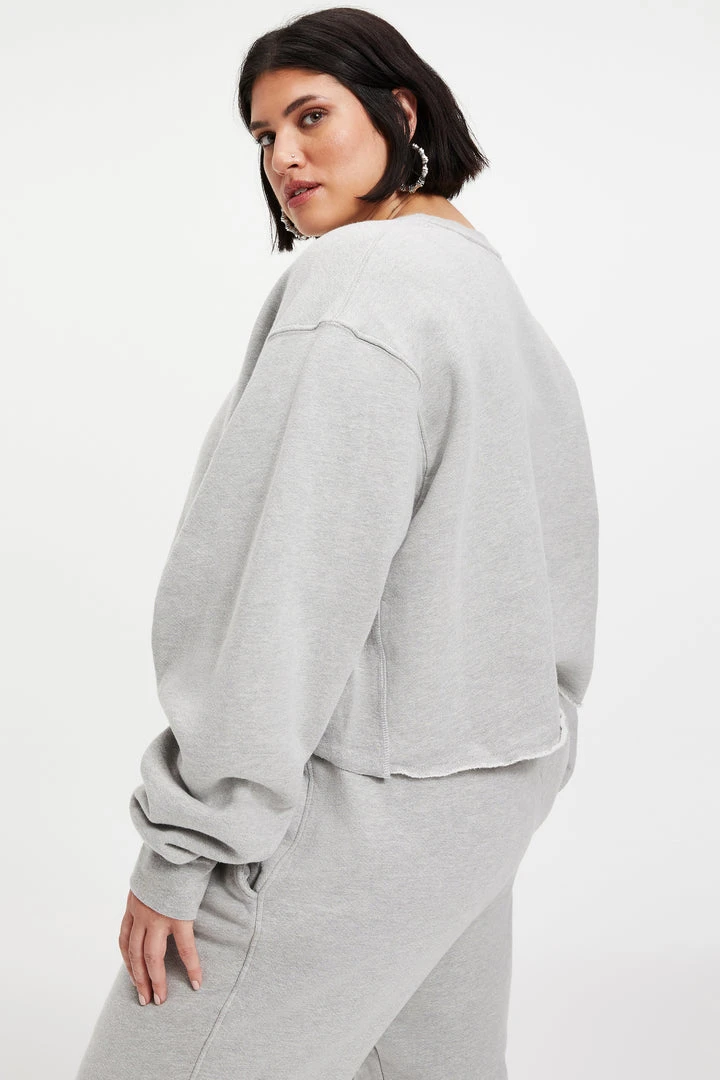 The Cropped & Cool Sweatshirt is your go-to exaggerated crew silhouette, and has ribbed side panels to hold this top away from your body. Dropped shoulder and extra long sleeve proportion give a baggy vibe, but not! Super cute with bike shorts or sweats.