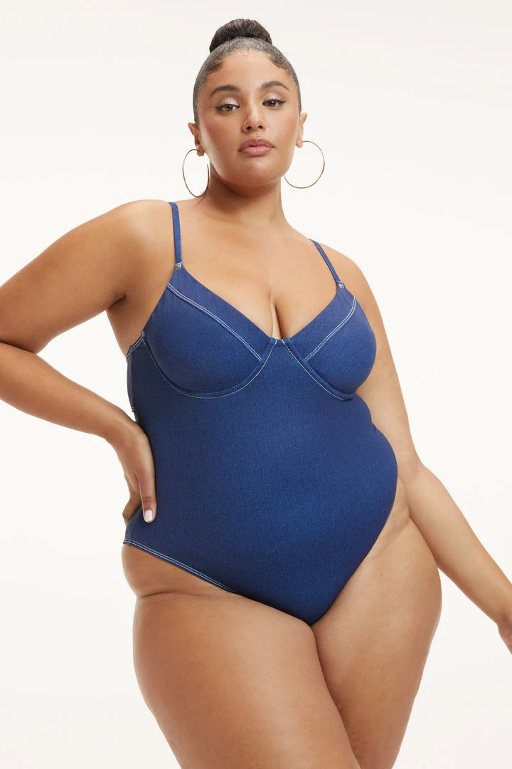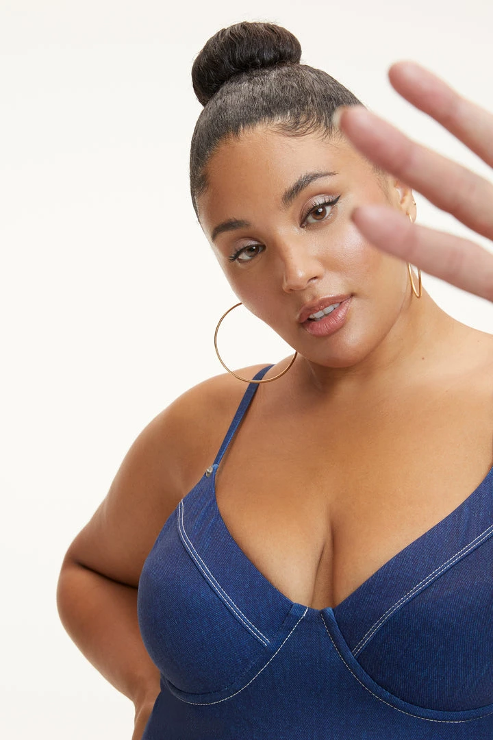 Sunbathe in style. Our high leg Denim Show Off One-Piece lets you show off your shape and feel sexy for yourself. Looks like denim, fits and feels like swim perfection.