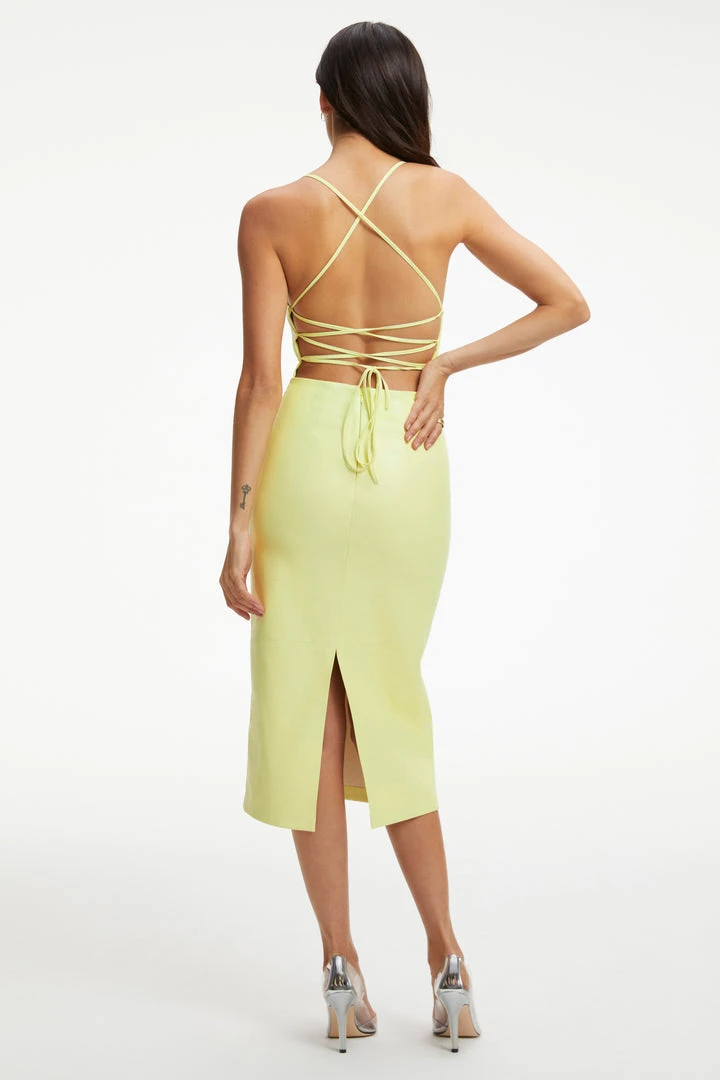 What’s Up, Legs? Whether you’re out to play or on vacay, the Better Than Leather Vacay Dress is a one and done situation. Lace up, and go off.