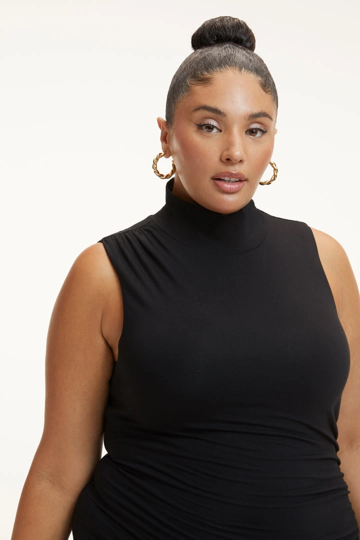 Designed to exude confidence, the Goodย Touch Turtleneck Midiย is a dress worth making plans for. With a sleevelessย turtleneck cut, designed to define your figure and flatter every curve, you will definitely be turning heads in this dress. It is made with the softest sculpting fabric that you’ll never want to take off. Pair with your favorite heels to finish off the look.