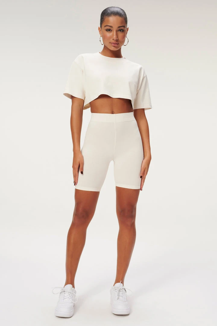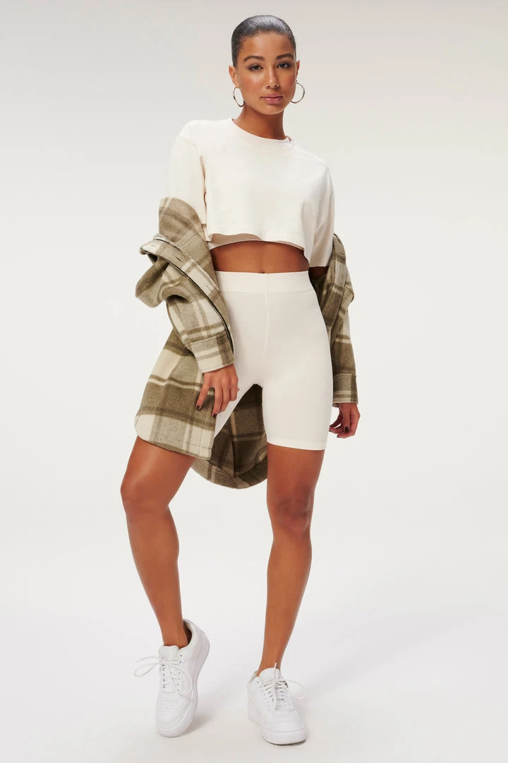 This crop top is essential. Easy to throw on with your favorite pair of bottoms, the new Essential Cropped Boxy Tee is sure to be that top you always reach for this summer.ย