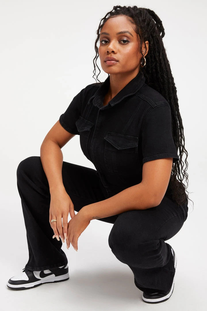 Our best selling Fit For Success Jumpsuit is as powerful as it looks. A denim jumpsuit featuring hidden front zipper closure and breast pockets. It makes you look effortlessly put together with minimal styling. We updated this look with a bootcut flare for that ultra 70’s feel.