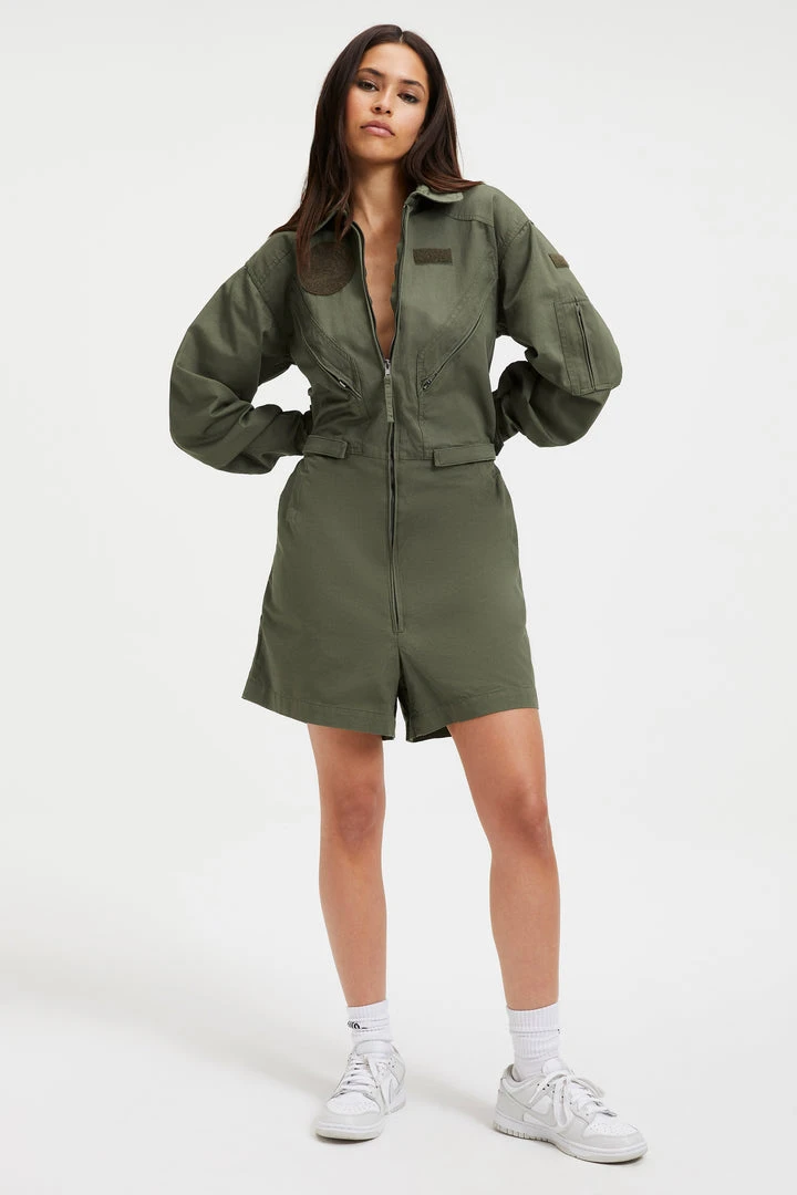 Drawing inspiration from the vintage military silhouette, the Flight Suit is going to be your new essential go-to item for everyday wear. We updated this silhouette into shorts, so you can enjoy this essential fit in the summertime too. It offers a balance of function and fashion made from a light twill fabric with adjustable straps at the waist.