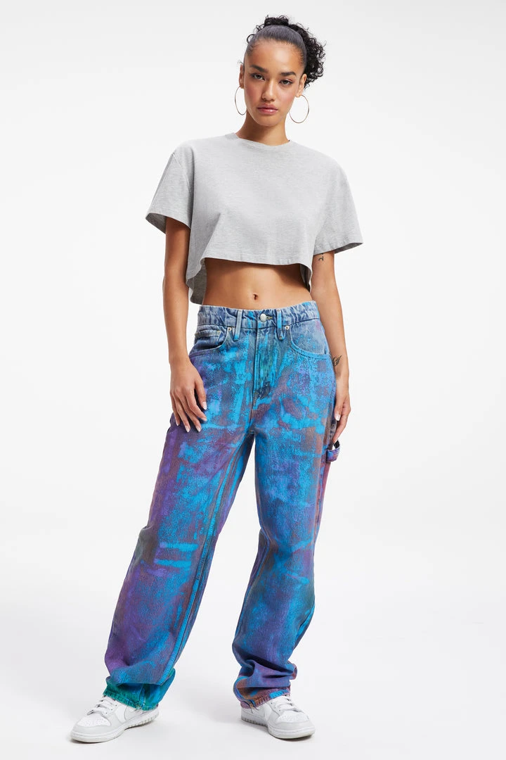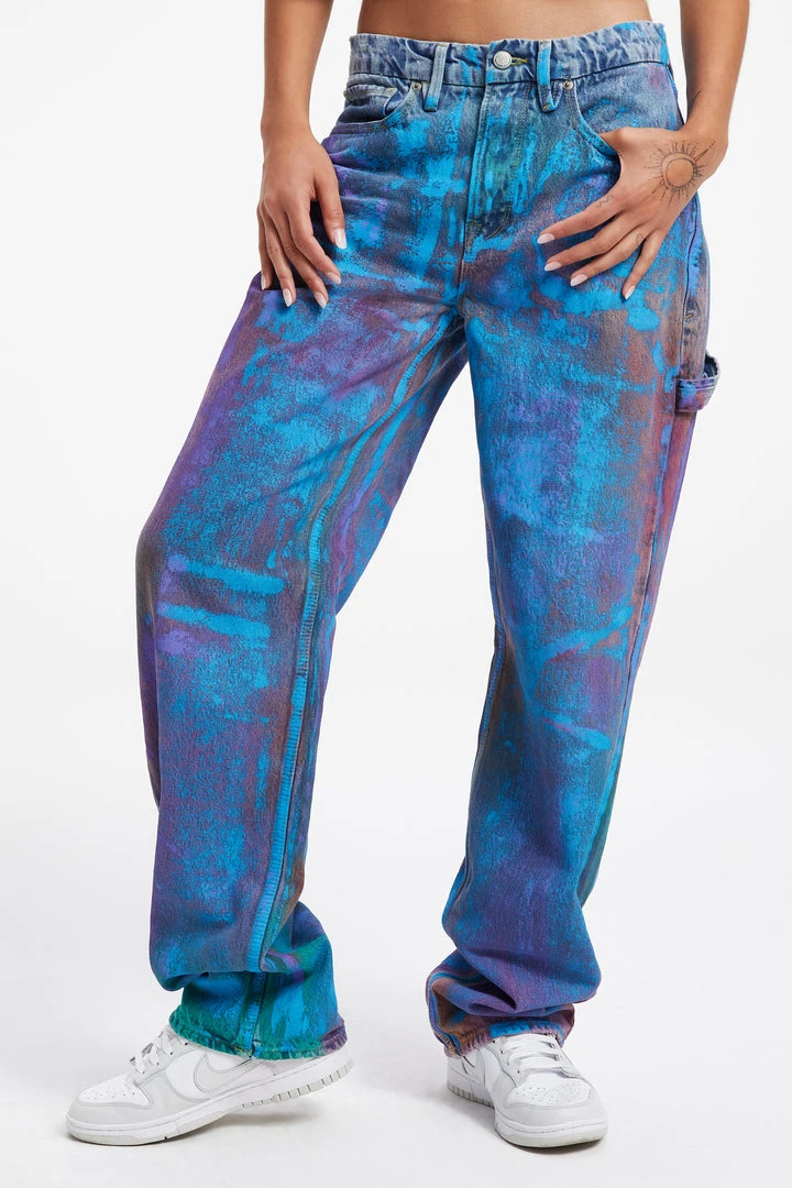Good American X Behavingliketeenagers jeans are hand painted one-of-a kind Good ‘90s jeans. Founded by Prentis, Behavingliketeenagers is launched in collaboration with Good Inc, our new initiative supporting emerging talent. I am very excited to be collaborating with Good American – this collection is a celebration of what being an artist is all about, it’s also about dressing real women in custom designs that add something special to their everyday lives which feels amazing ” – PRENTIS